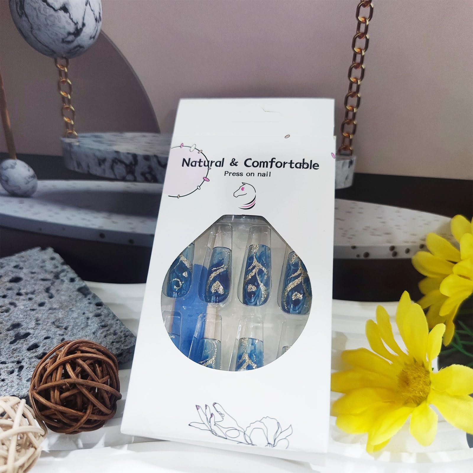 - Trendsetting Style at Your Fingertips: Elegant shades of popular and trendy colors medium press on nails will be suitable for daily, Elevate your unique personality with our blue gradient stick on nails for women