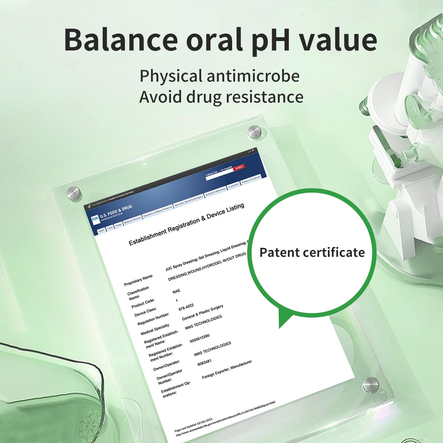- Innovation: Nozzle non-aerosol pump spray design, using the latest patent to improve breath problems, balance oral pH value, mild, non-irritating, but effective and lasting clean and fresh mouth