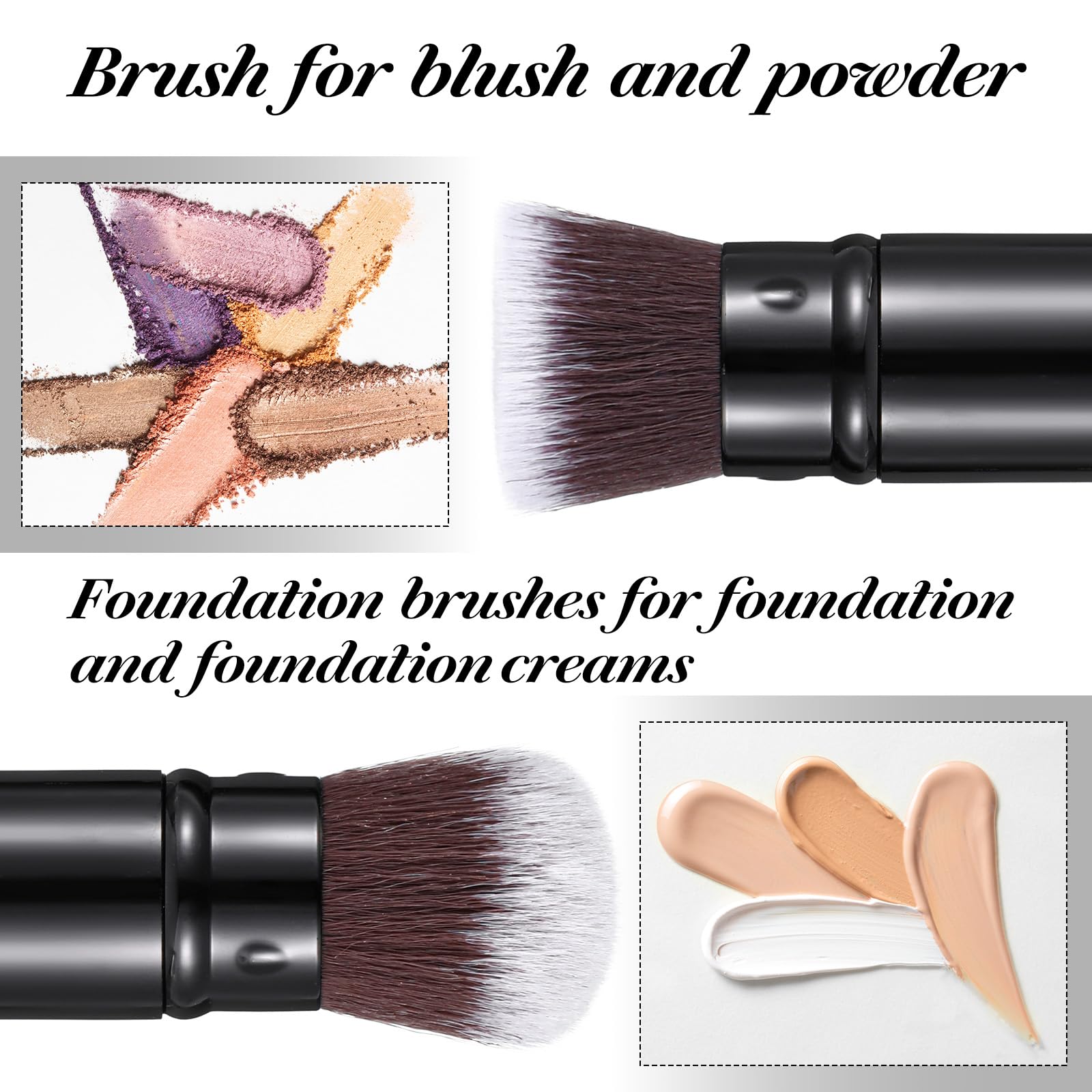 - 3 Multi-Functional Brushes:Round head blends liquid foundation/sunscreen, angled brush contours blush/bronzer, flat top buffs – perfect for full-face routines with minimal tools.
