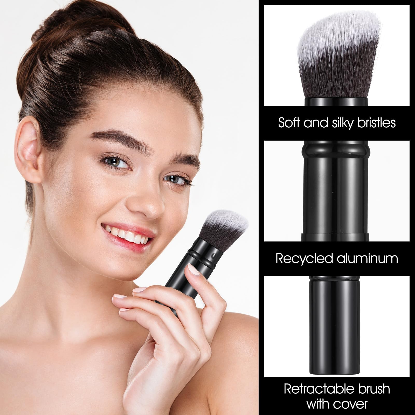 - Portable Retractable Design for Mess-Free Travel: Retractable aluminum body (3.54” closed) protects bristles from dust, fits in purses/makeup bags