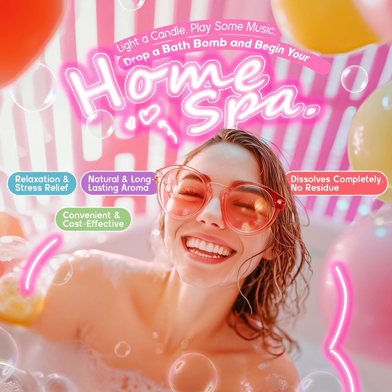 - HOME SPA EXPERIENCE: Transform your bath into a relaxing spa-like retreat with our bath bombs. Simply drop one into warm water and watch it fizz, releasing soothing scents and nourishing ingredients that calm your mind and soften your skin. Each bath bomb fully dissolves with no residue, leaving you with a clean and refreshing soak. Perfect for unwinding after a busy day or as a quick escape when you need it most. Compact and travel-friendly, these bath bombs are ideal for vacations, business trips, or anytime you're away from home, bringing the benefits of aromatherapy wherever you go