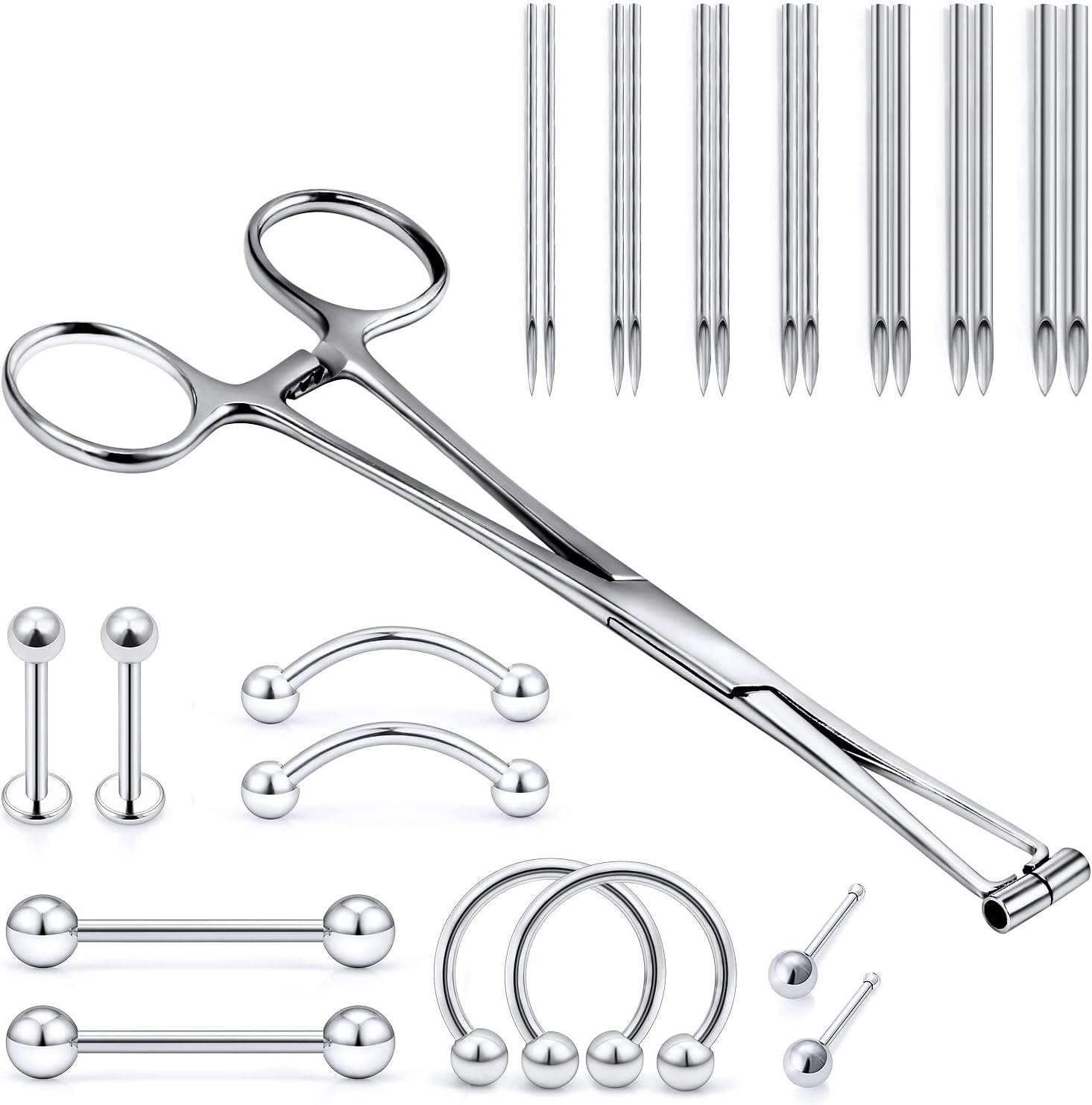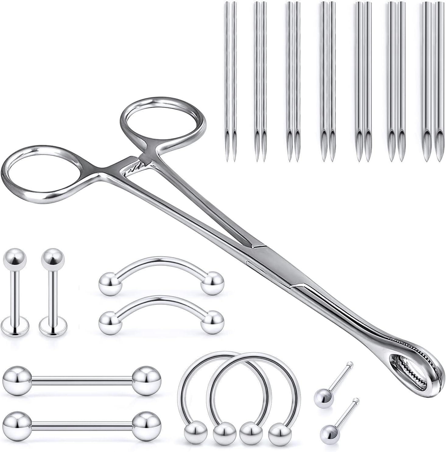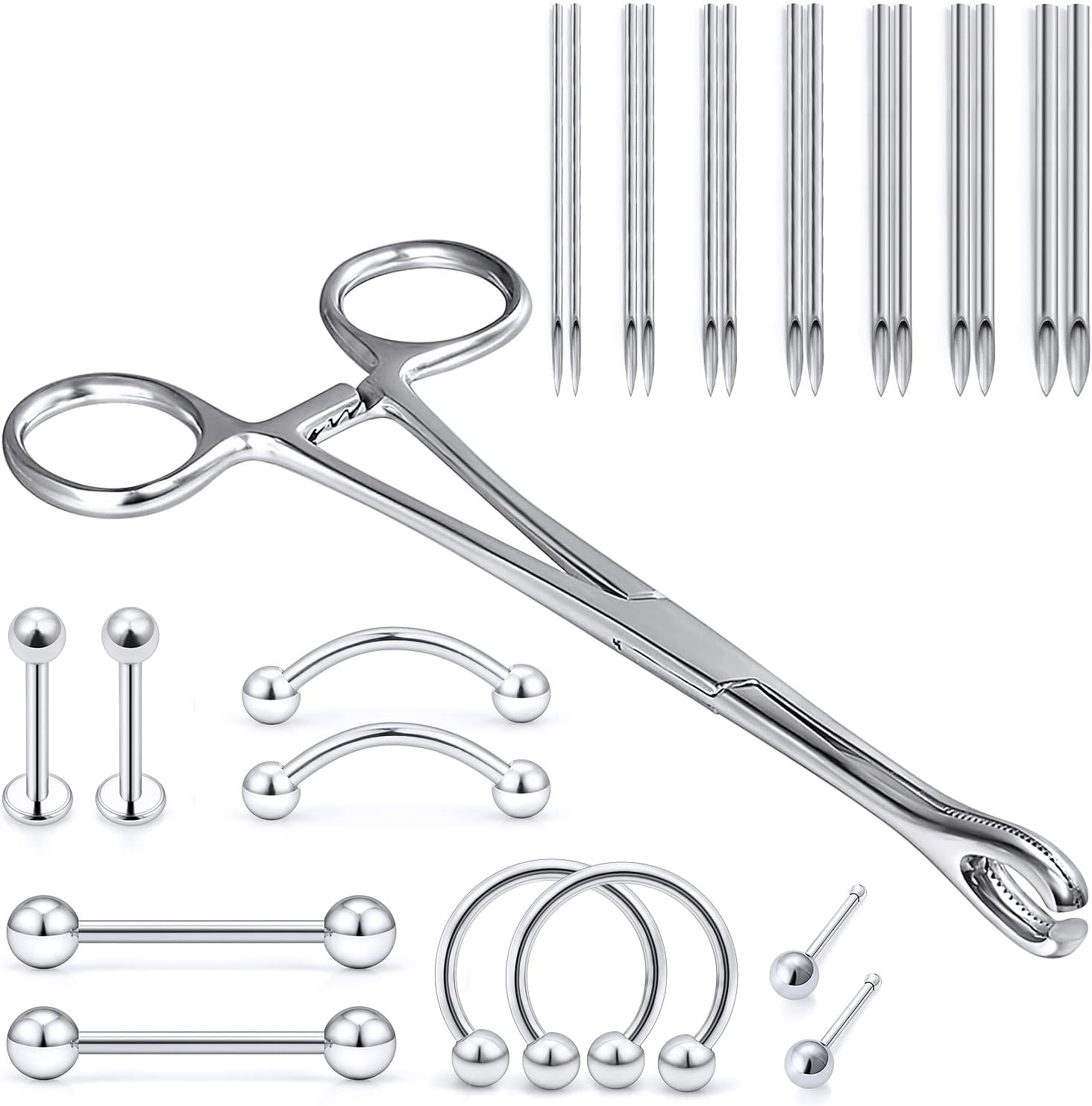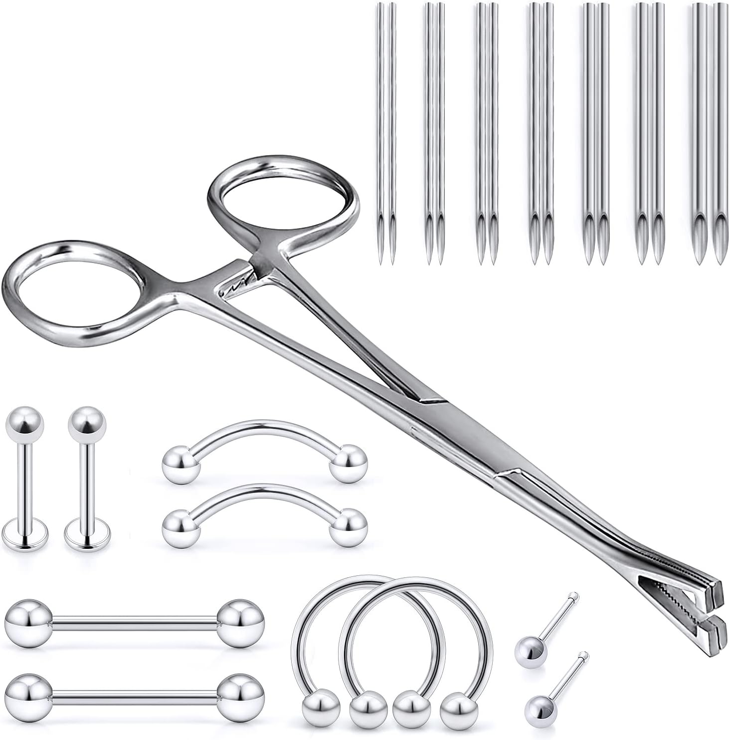 316L Surgical Steel Body Piercing Tools Kit - 9 Styles for Nose, Septum, Lip, Tongue & More
