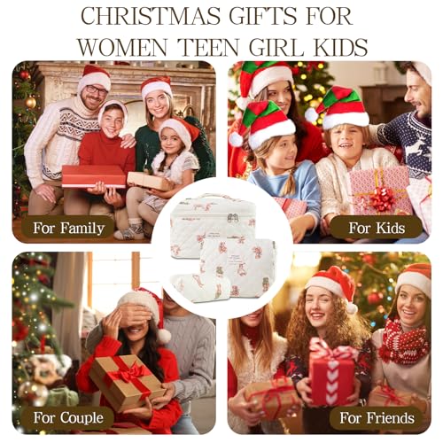 3Pcs Quilted Makeup Bag for Women, Large Travel Makeup Bag Set, Cute Aesthetic Cosmetic Bags, Floral Cotton Makeup Pouch Coquette Toiletry Organizer Bag