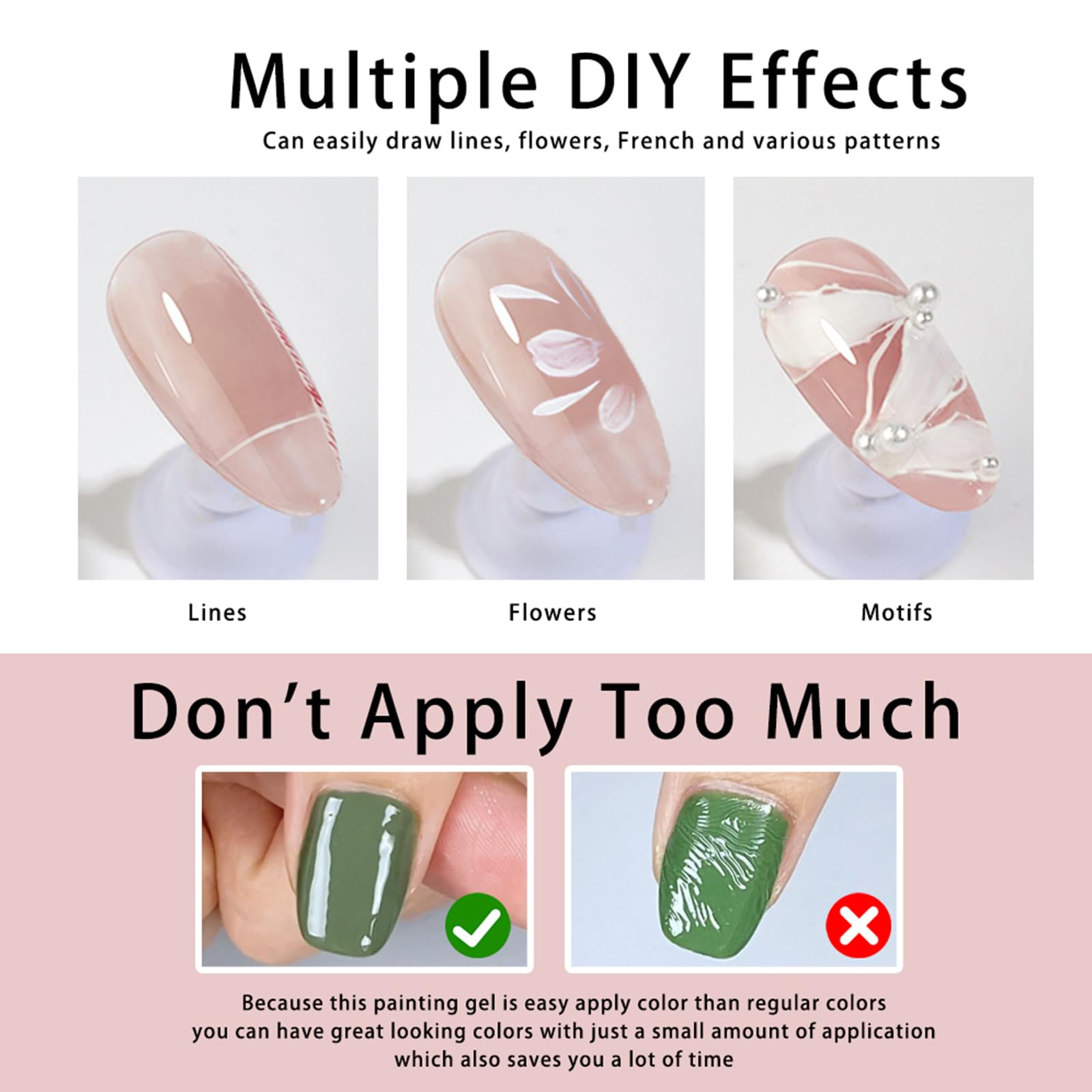 - Versatile Use: This Painting gel for nail art is a popular color all year round! Gel nail paint symbolizes confidence and elegance in any season or occasion! French tip nail polish perfect for professionals and DIY nail art enthusiasts. Liner gel polish suitable for everyday, parties, salons and festivals such as Christmas