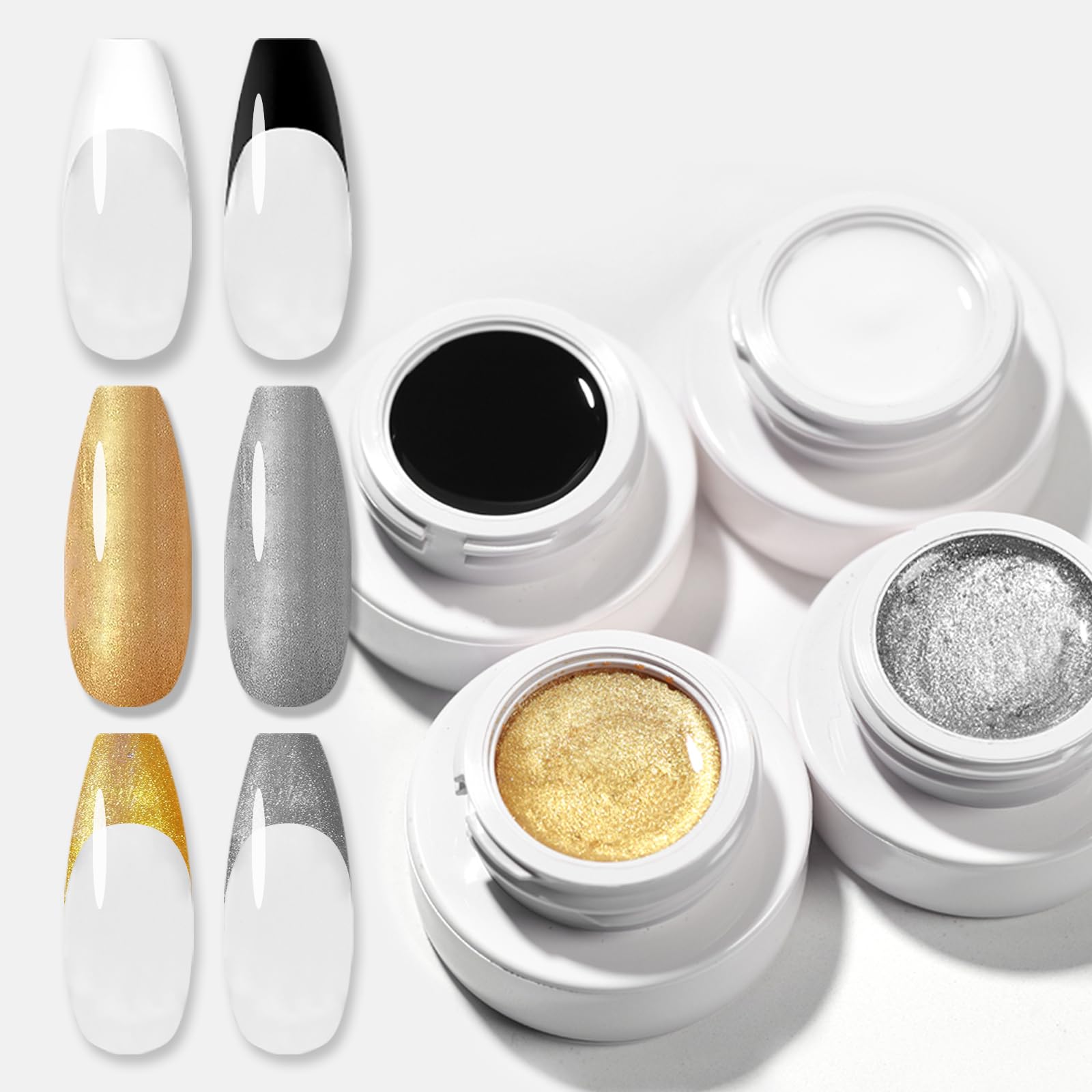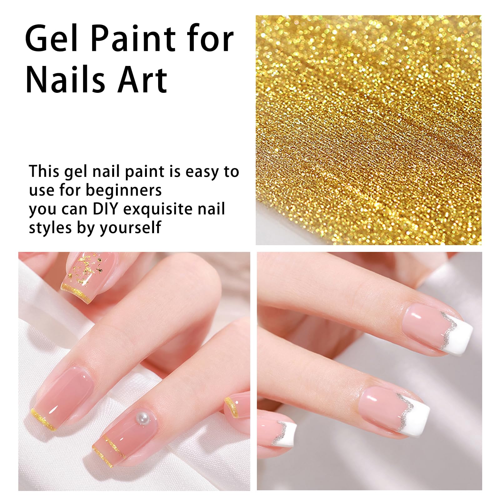 - Gel Paint for Nails Art: Gel nail art polish kit includes 4 coloring nail art gels (white, black, gold, silver). Gel paint set design allows you to color, draw and paint easy. Gel liner nail polish can easily draw lines, flowers, French and various patterns
