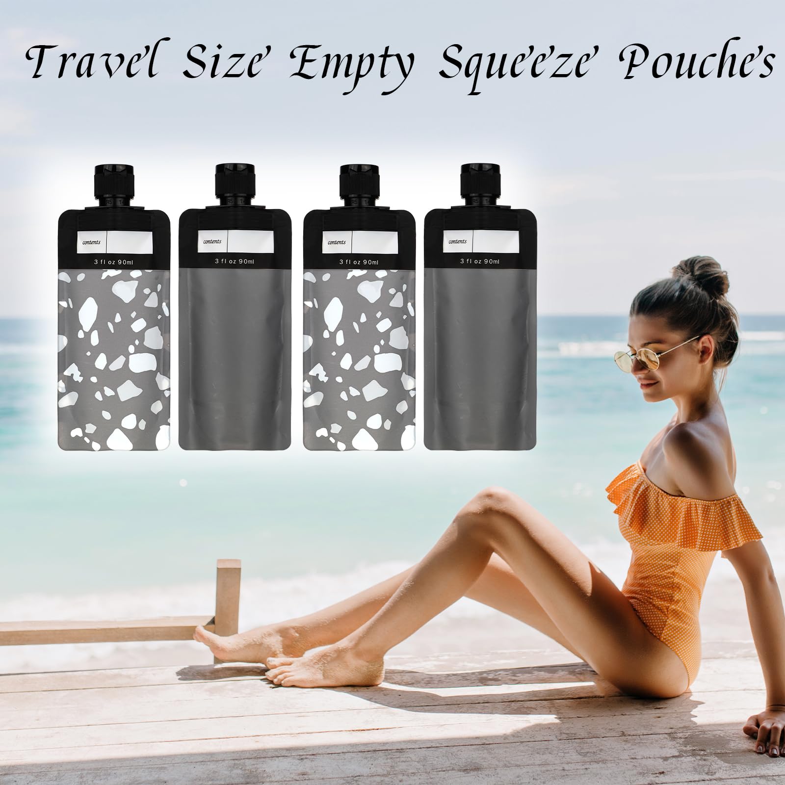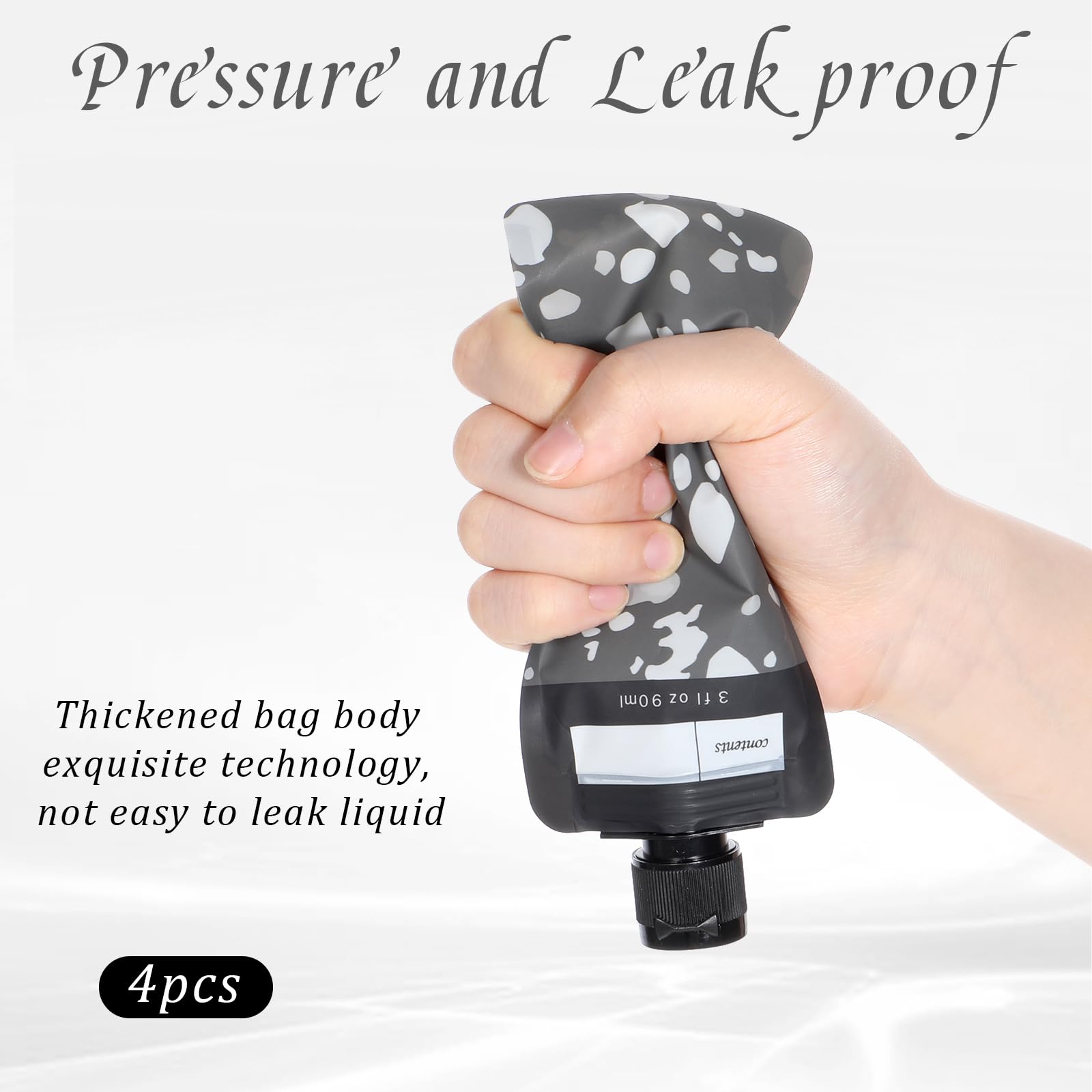 4 PCS Travel Pouches for Toiletries, 3oz Leak Proof Empty Squeeze Pouches, Refillable Travel Containers, Portable Travel Fluid Makeup Packing Pouches for Shampoo Conditioner Lotion Body Wash, Style 4