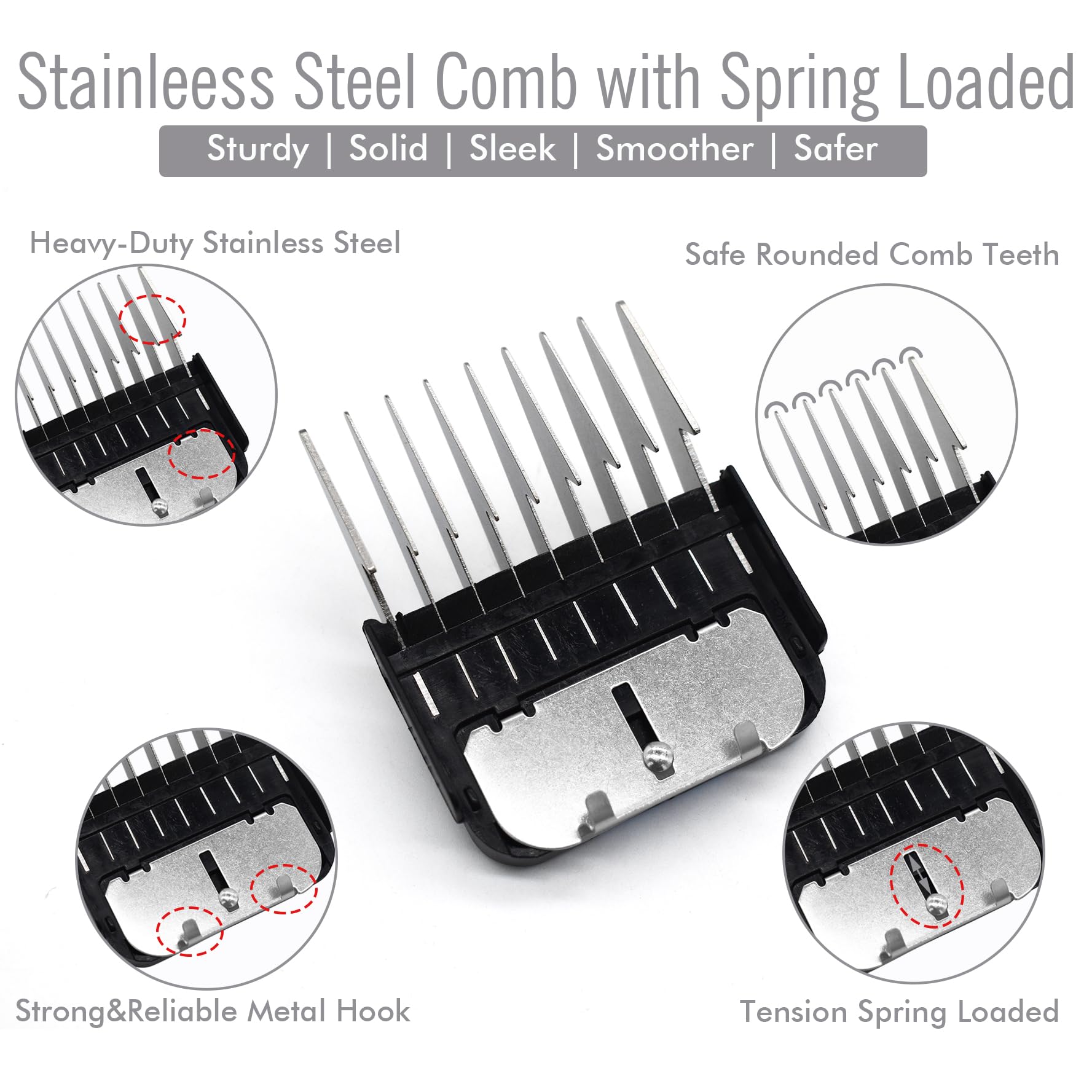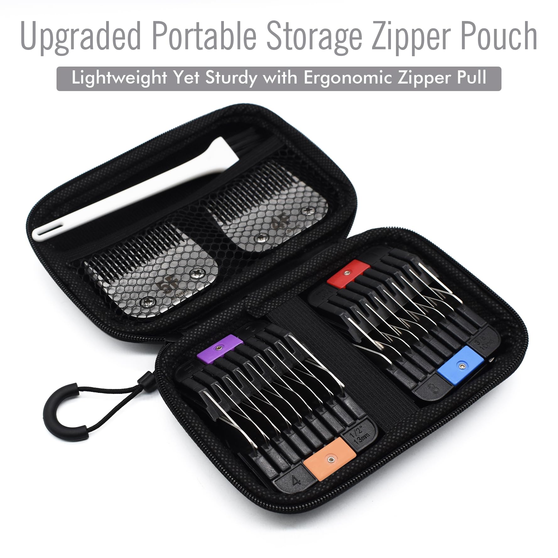 - The 4 cutting guard combs are packed in a zipper pouch with a cleaning brush, compact, easy to clean and store, easy to carry around, and perfect for both professional, home farm use