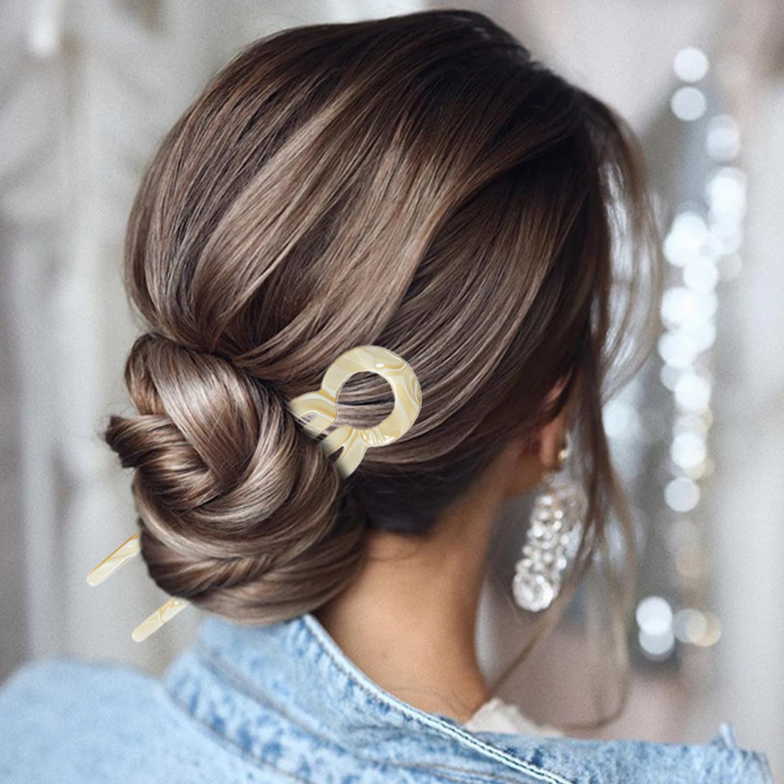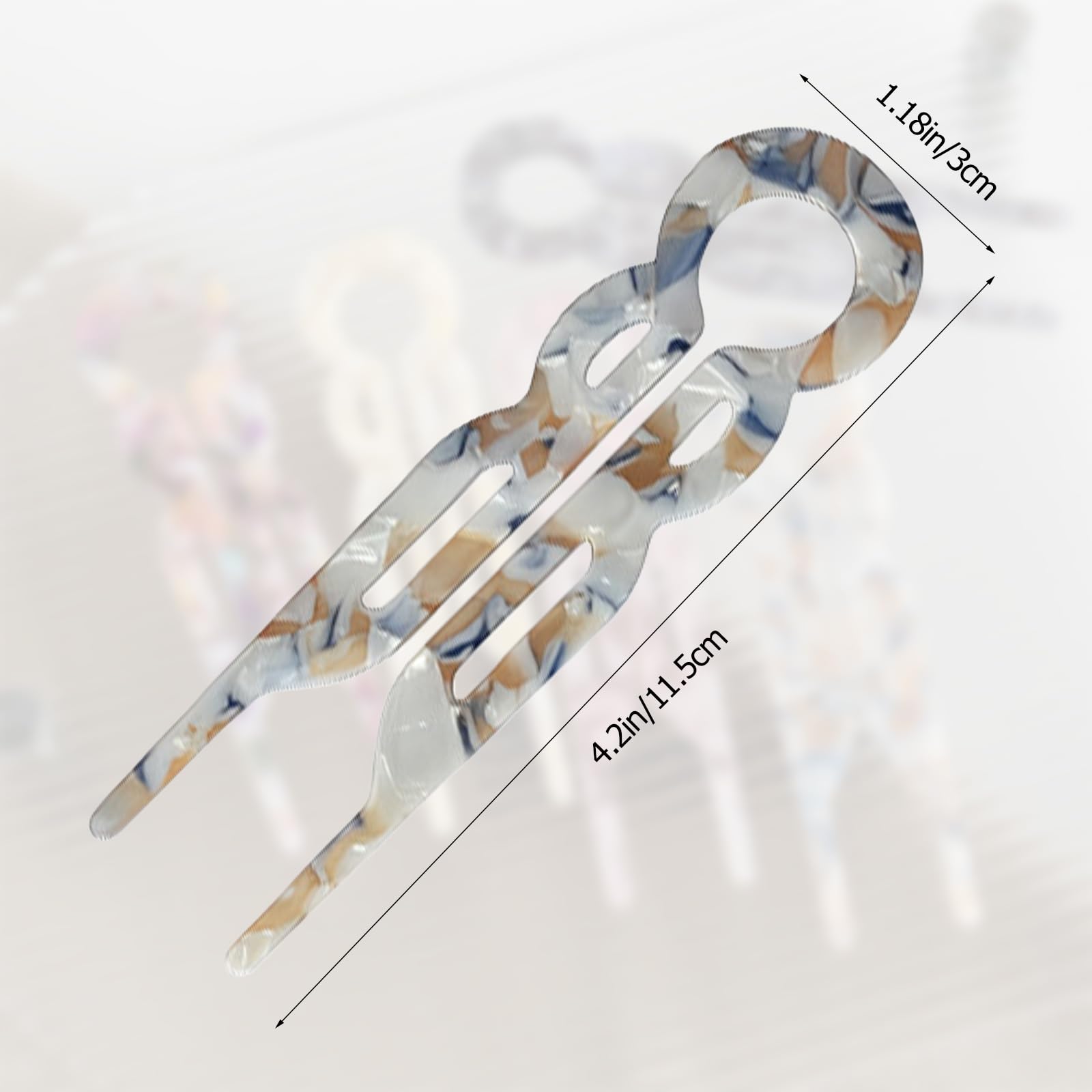 Details: These 4 U-shaped acetate hair pins are lightweight, durable, and perfect for all hair types. Ideal for creating stylish buns, updos, and braids with a secure, comfortable hold. add elegance to any look.