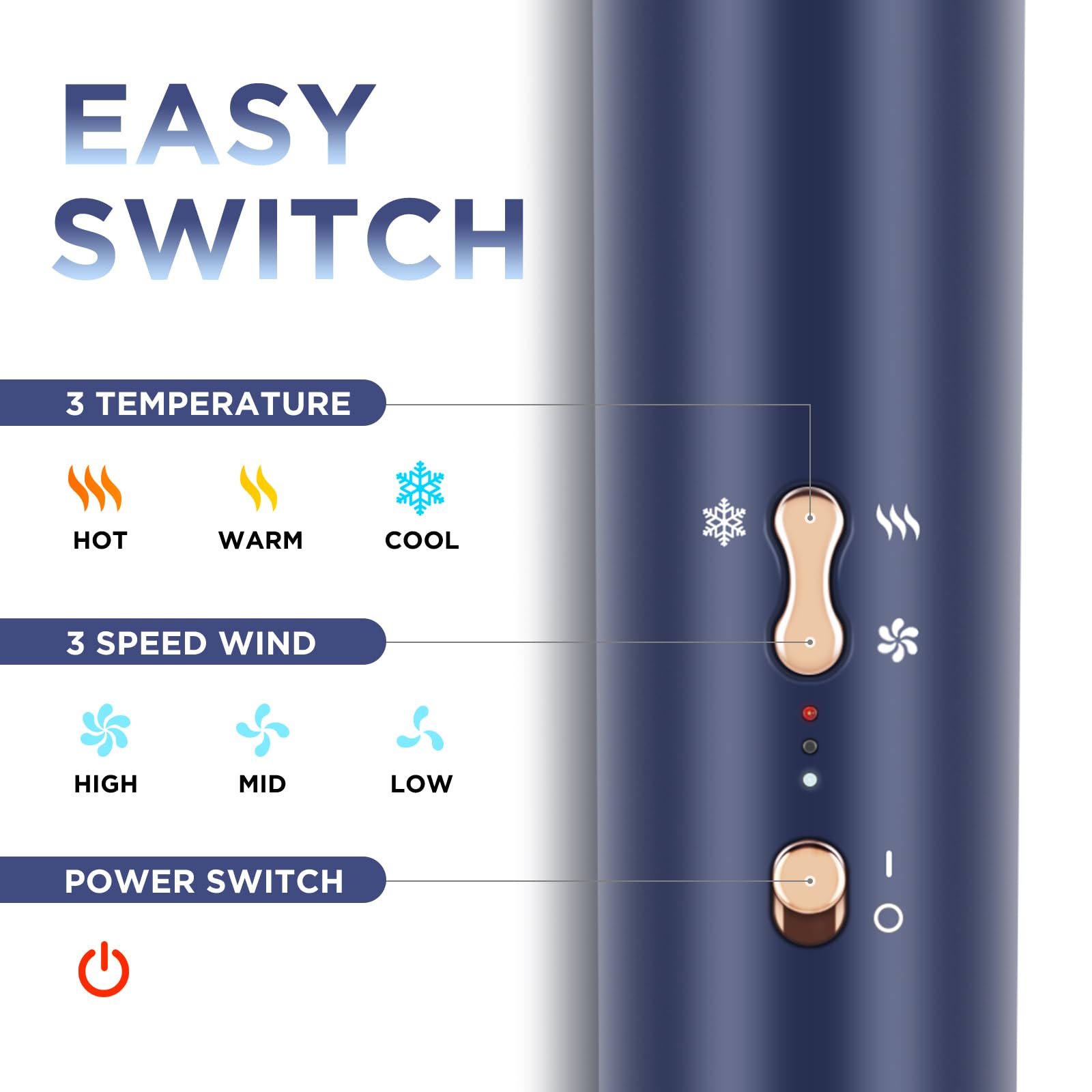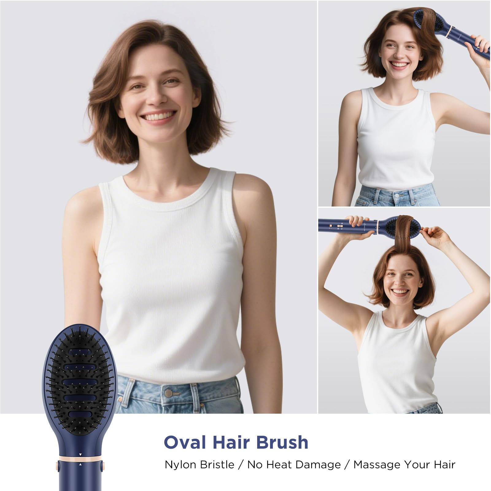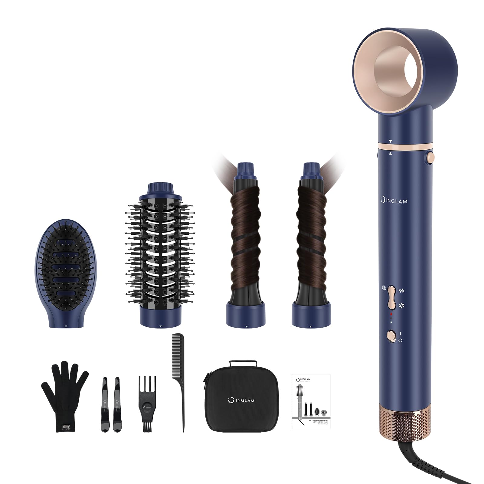 5 in 1 Blow Dryer Brush IG INGLAM MegaAir Hair Styler Brushless Hair Dryer Brush Left/Right Air Auto-Wrap Curler Hot Air Brush Negative Ions No Heat Damage Frizz-Free Drying Curling, Prussian Blue