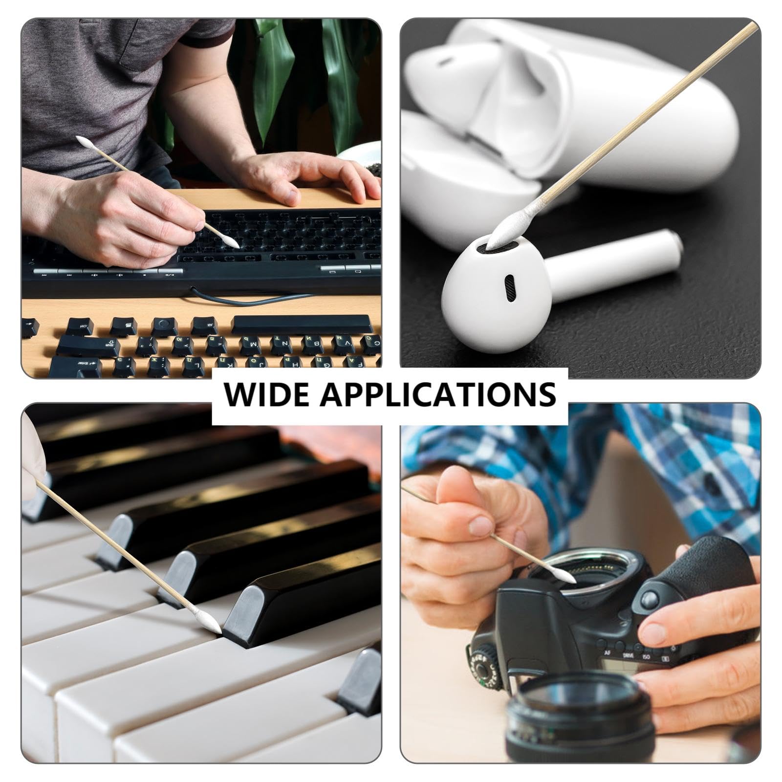 - DOUBLE-END POINTED TIP: 900 count can be used twice at least, equating to 1800 swabs. 6" long length for hard-to-reach place use and precision cotton tip allow tight spaces cleaning, applying