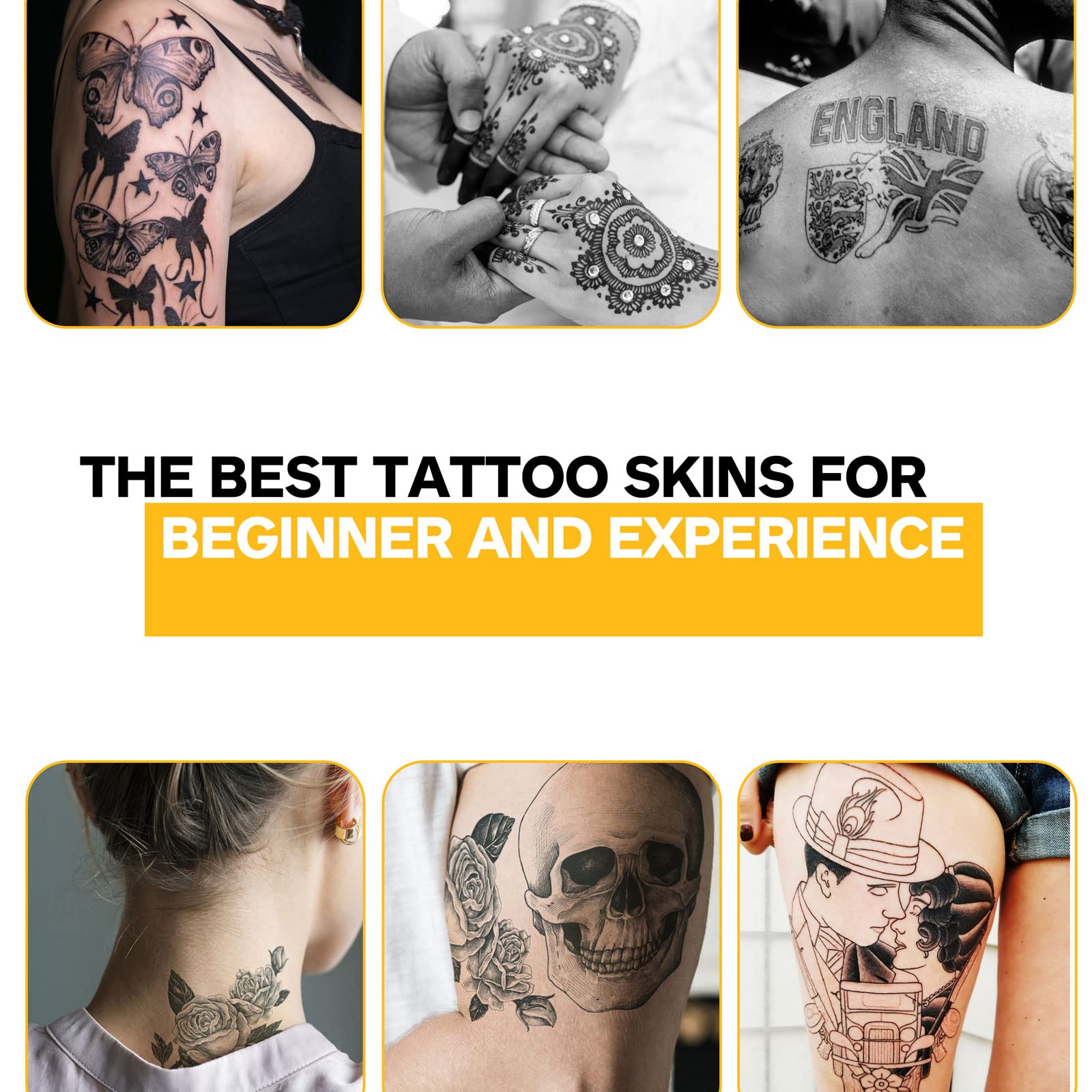 - Surprise Package : Tattoo practice skin kit includes 6 PCS (11.8x 8.3in) as well as 2 Pcs tattoo templates. Both sides of each tattoo skin are blank, providing enough space for your masterpiece creation