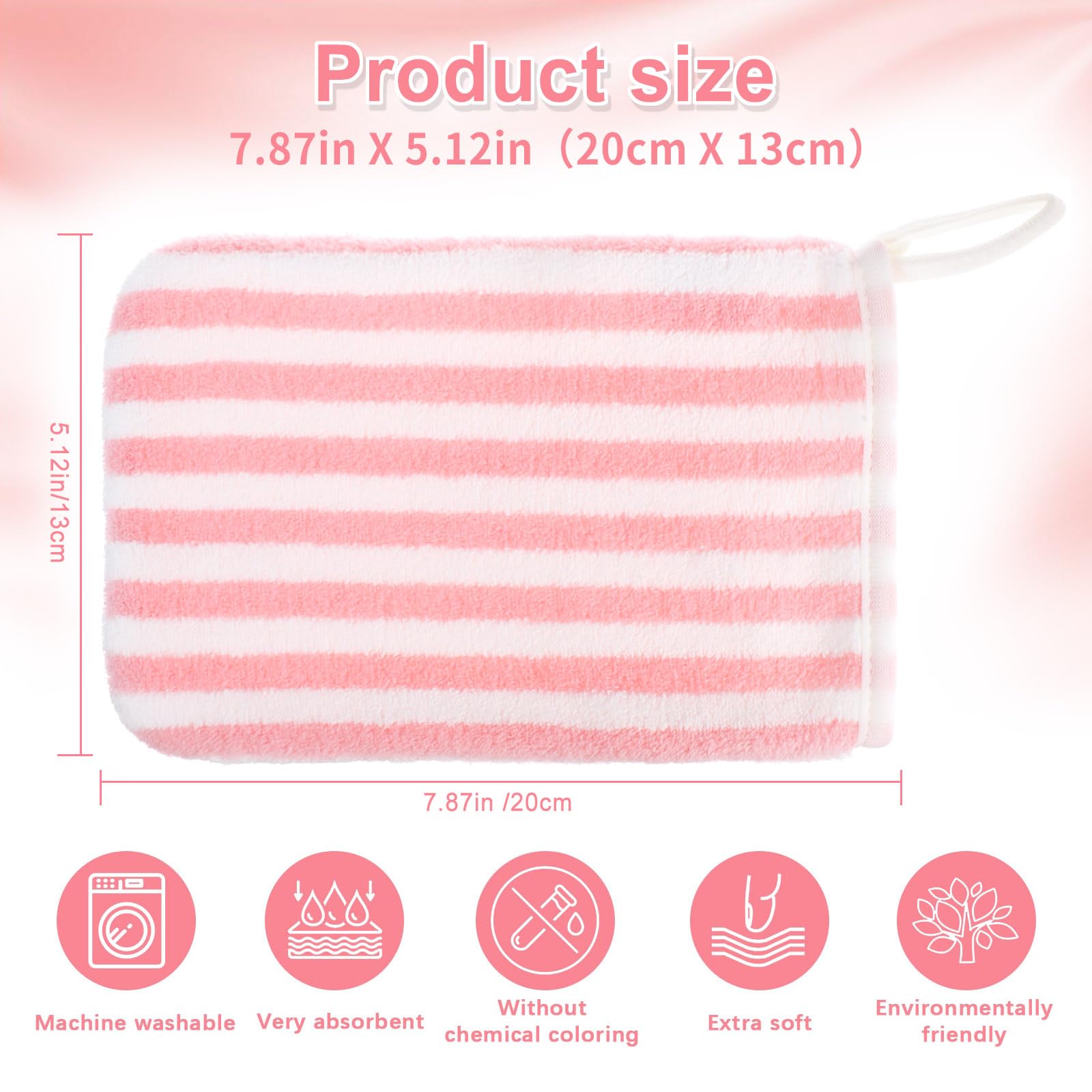 6 Striped Bath Mitts Washcloths, PHOGARY Small Hand Towels with Hanging Loop, 5"x8" Super Absorbent Soft Coral Fleece Face Towels Kid Teen Adult Body Facial Cloths Machine Washable Cloth for Showering