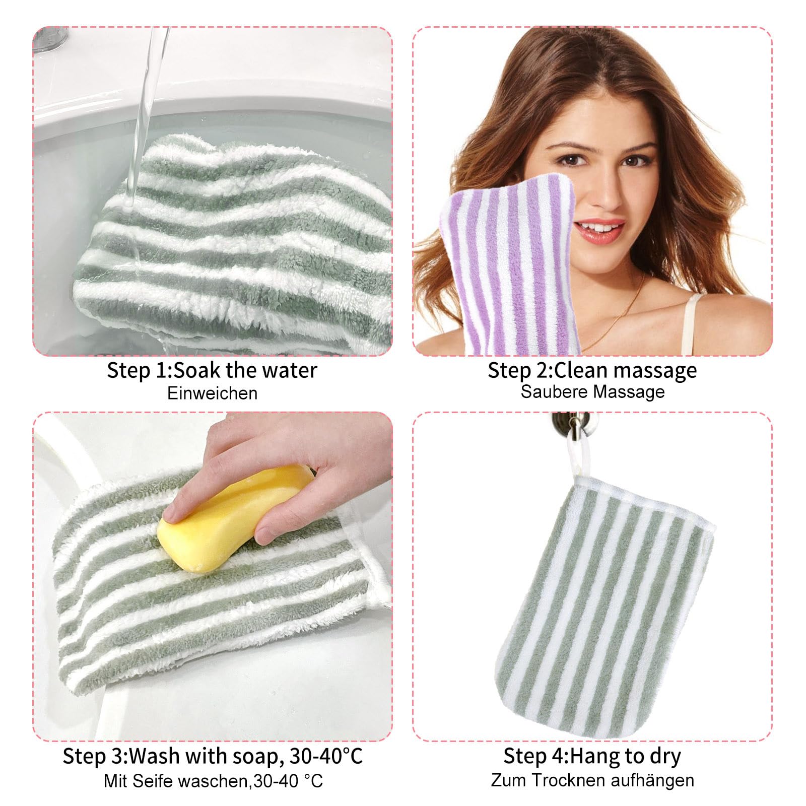 - Size:7.8"x5.1", perfect to wear on your hands or as a traditional face towel. Made of high-quality Coral Fleece materials, face and body mitt set is very soft and delicate and does not irritate the skin, great for children and adults.