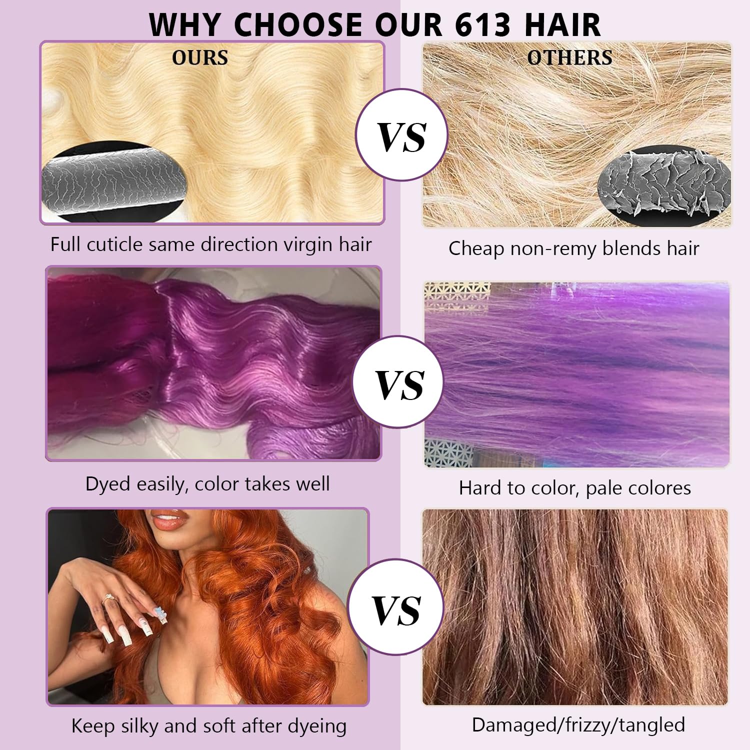 - 613 Blondes Bundles Suitable Occasions: Our 613 Bundles Human Hair Are Perfect to DIY, Sewing, Braiding, Making a 613 or Colorful Hairstyle, It Is Suitable to Wear Any Time Any Occasions, Such as Parties, Birthday, Celebration, Cosplay, Graduation, Travel, Wedding, Work and Your Daily Life