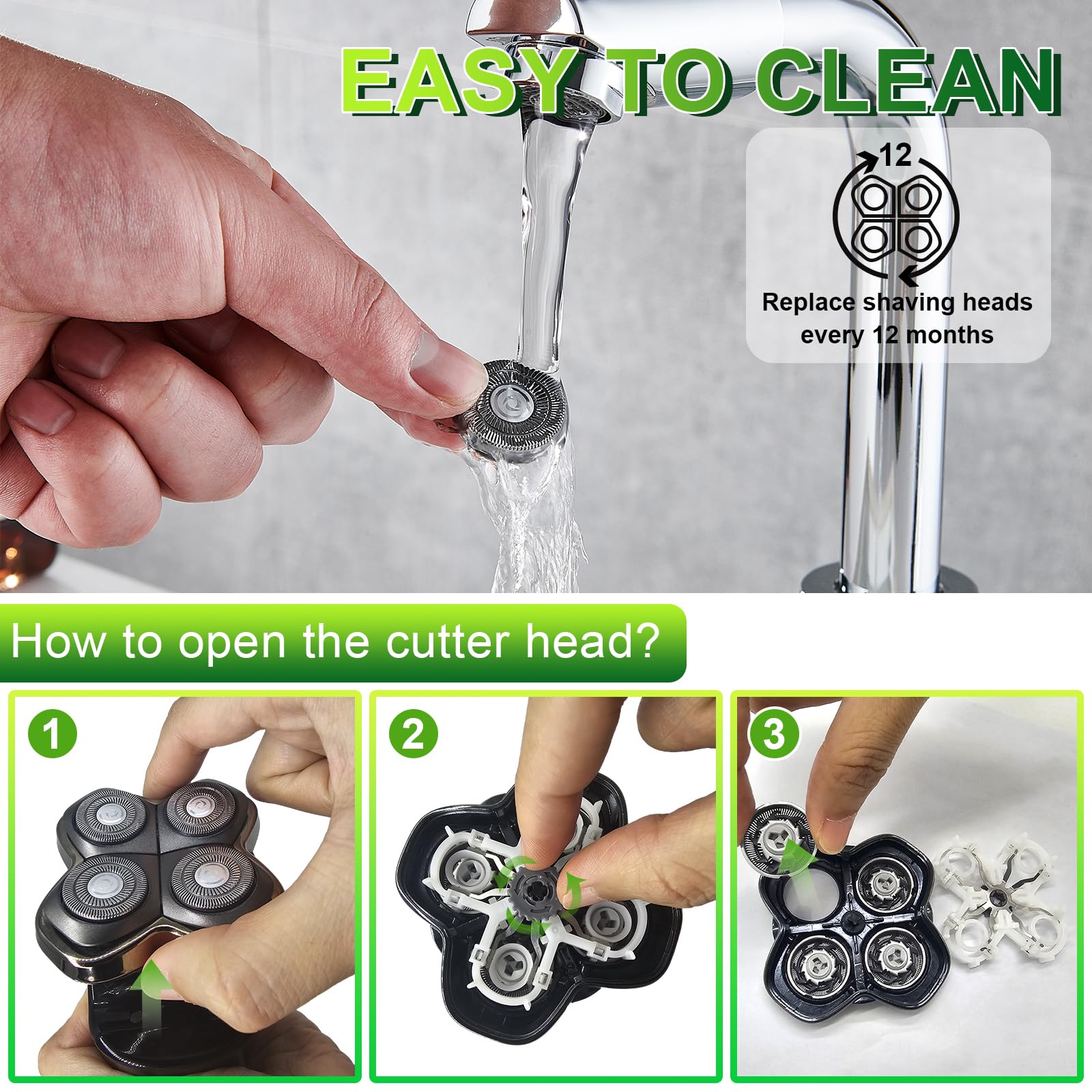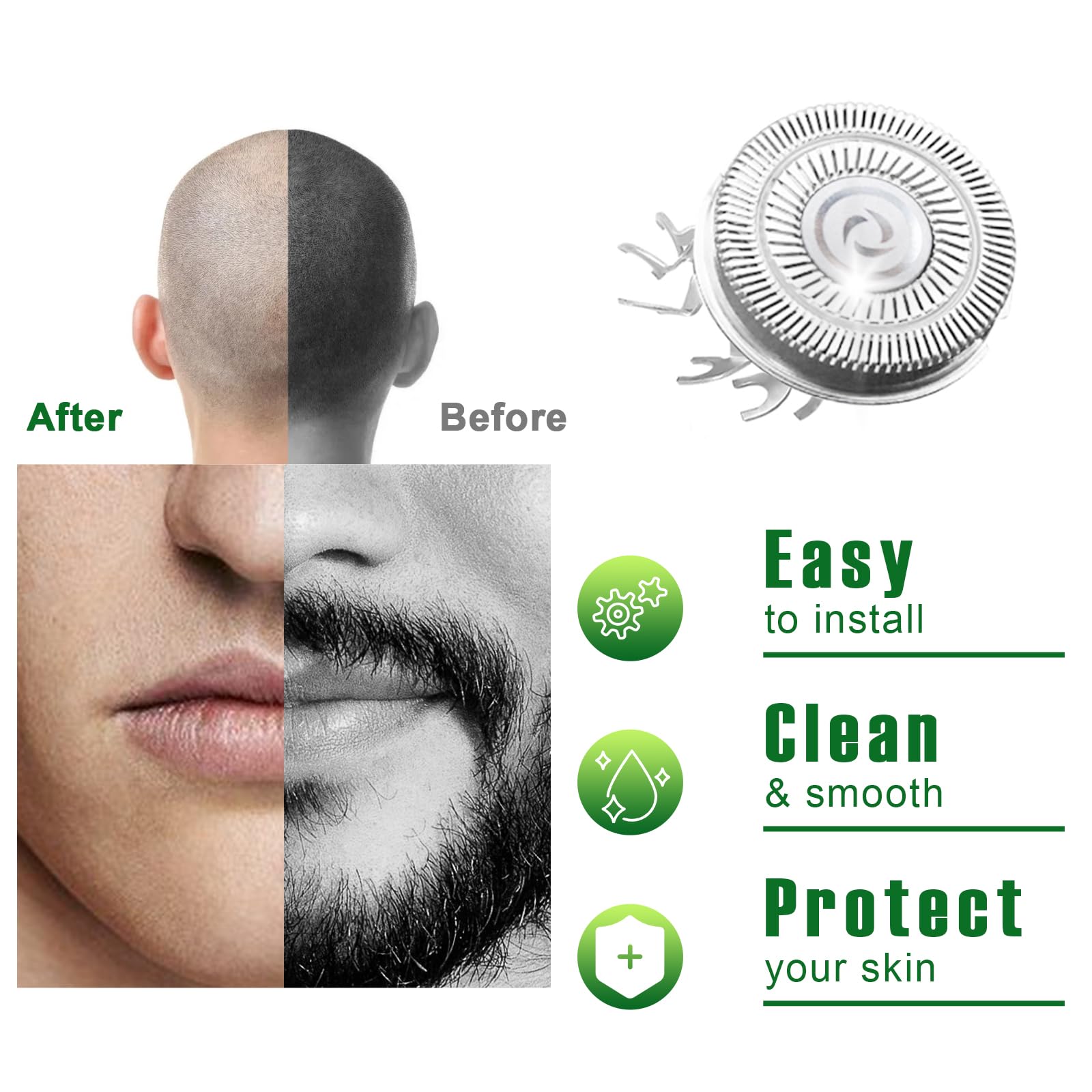 - 【360 degree floating blades】Remove your beard gently, painlessly and more clean, round head design perfectly protect your skin from scratching. Non-Original Replacement Heads, this a high quality replacement for a fraction of the price.