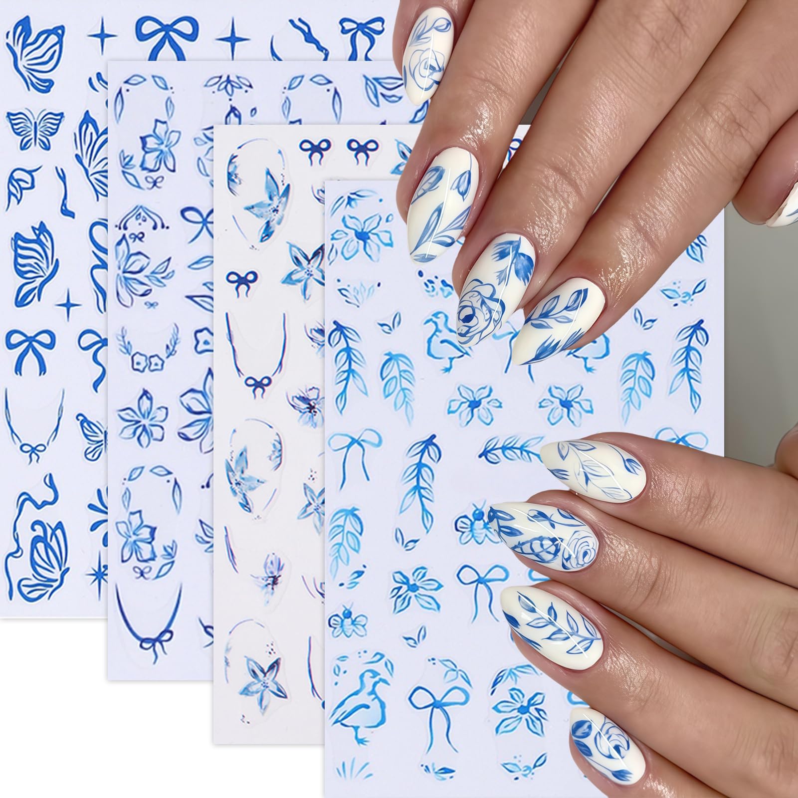 - Flower Nail Stickers: You will receive 8 sheets blue flower nail decals for nail art,Large number of different patterns for you to use and replace in daily life, nail decals are full of sensuality and elegance, various charming patterns bring you a different mood