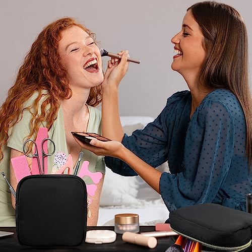 9 Pcs Mini Makeup Bags Bulk Nylon Cosmetic Bags for Purse Travel Bag Pouch Toiletry Organizer Pouches Bag for Women, Small Zipper Pouch Preppy Coin Purse for Custom Birthday Gifts (Black)
