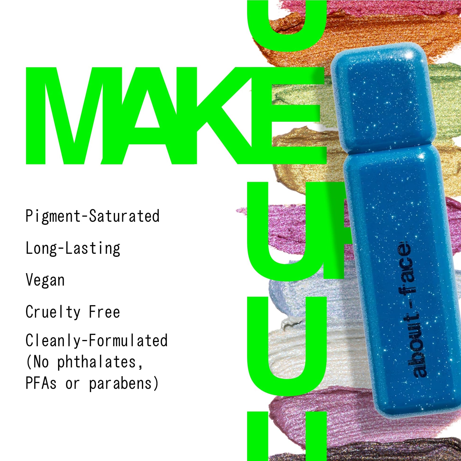 About-face Fractal Glitter Eye Paint Above Santorini – Smudge-Proof, Long-Lasting Liquid Eyeshadow – Intense Sparkle with Mousse Texture – Vegan, Cruelty-Free – 0.13oz (Sapphire)