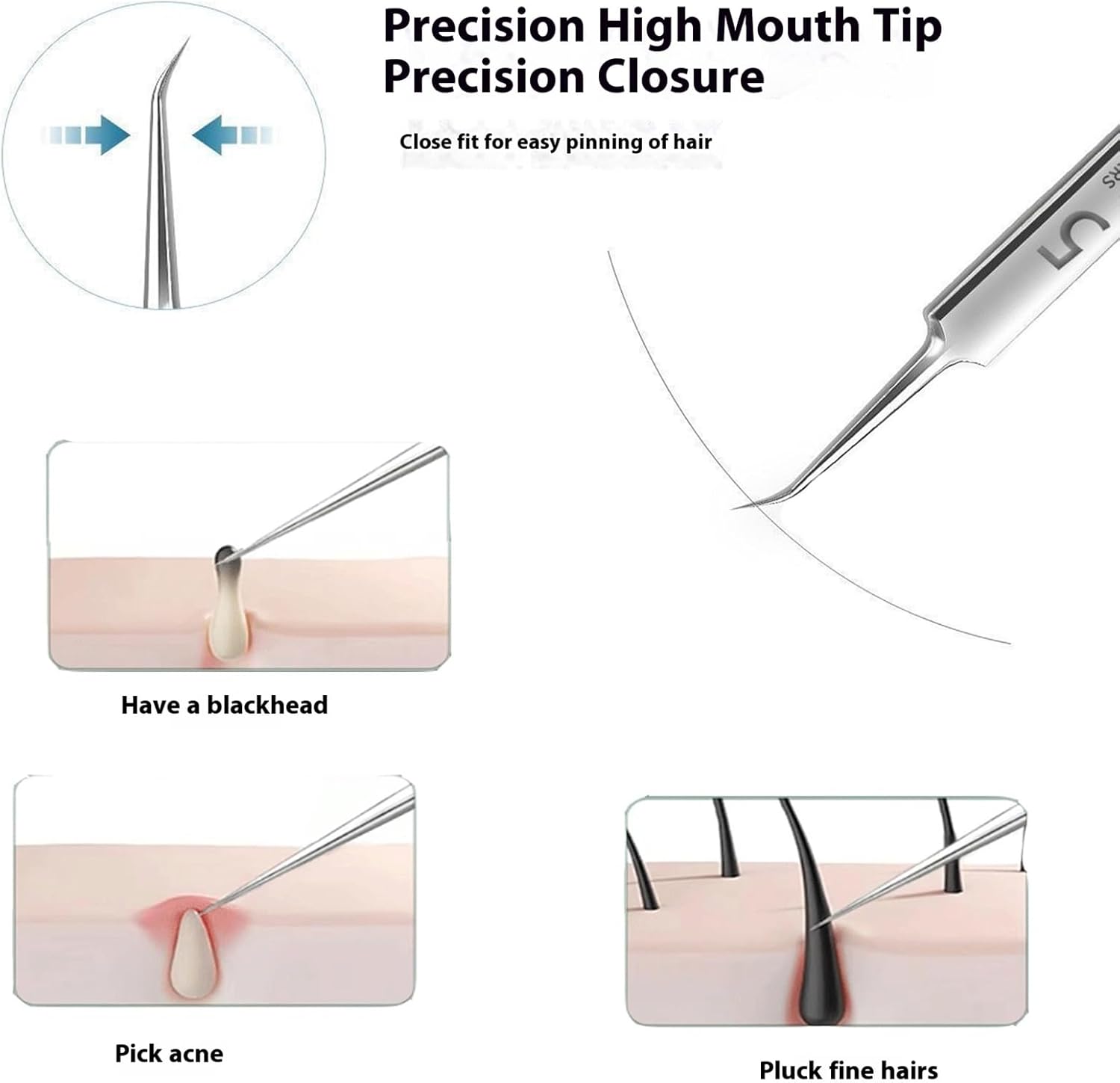- Ergonomic Design: Each acssart precision stainless steel blackhead remover kit features a textured grip pattern and balanced weight distribution for precise control during use, and curved tweezers have serrated tips to ensure a tight grip without slipping