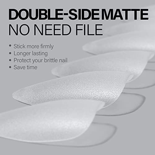 - FULL MATTE TEXTURE - Why choose AILLSA nail tips? Choosing upgraded double sides full frosted texture, the gel nail tips feature stronger adhesion, better fitting your natural nails. Using this acrylic nail tips, you can enjoy the privilege of ¡° NO NEED FILE, NO NEED BASE COAT ¡±. No worry that your nails will become thinner and uglier due to polishing, providing better care for your nails. Without base coat, you also can get the manicure effect you want, saving time and money.