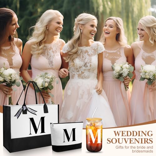 Aliceset Initial Gifts for Women Monogram Canvas Tote Bag and Makeup with Zipper and Initial Glass Coffee Cup Gifts for Her