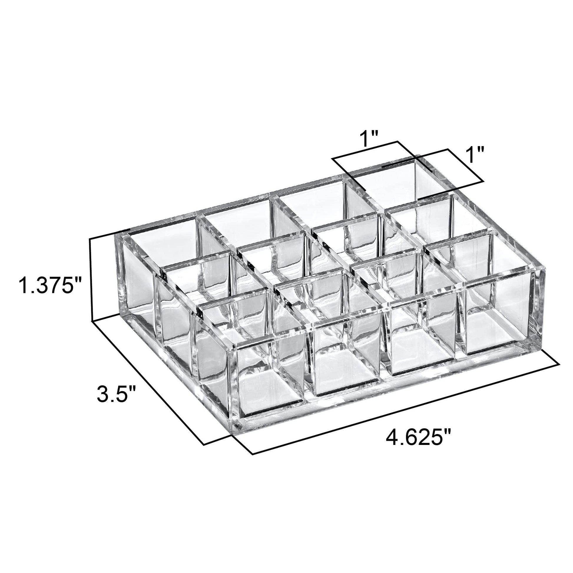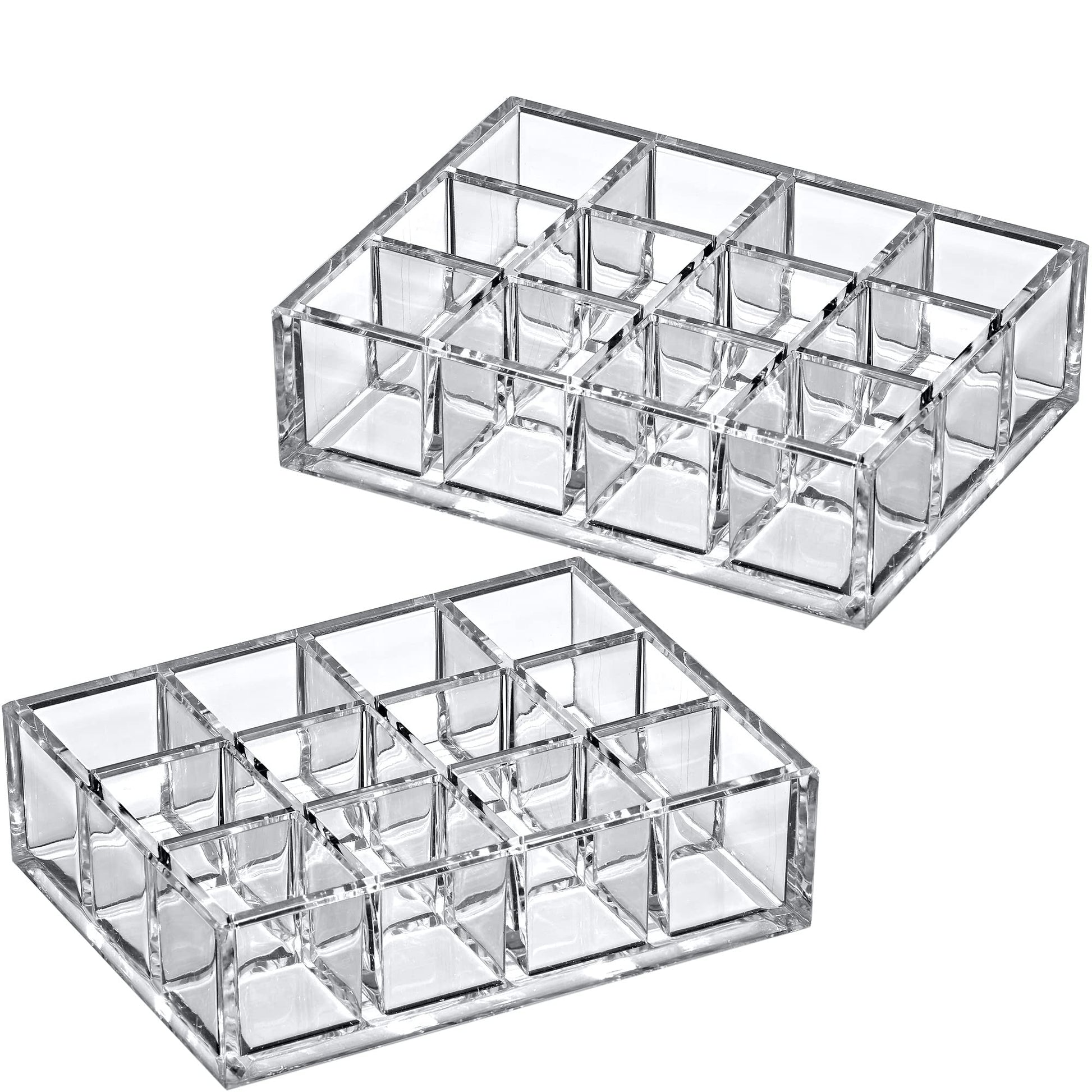 Amazing Abby - Allure - 2-Pack 12-Slot Acrylic Lipstick Organizer, Lipstick Holder, Lip Gloss Holder, Cosmetic Storage Display, Perfect Storage Solution for Drawer and Vanity (Slot Size: 1.0" x 1.0")