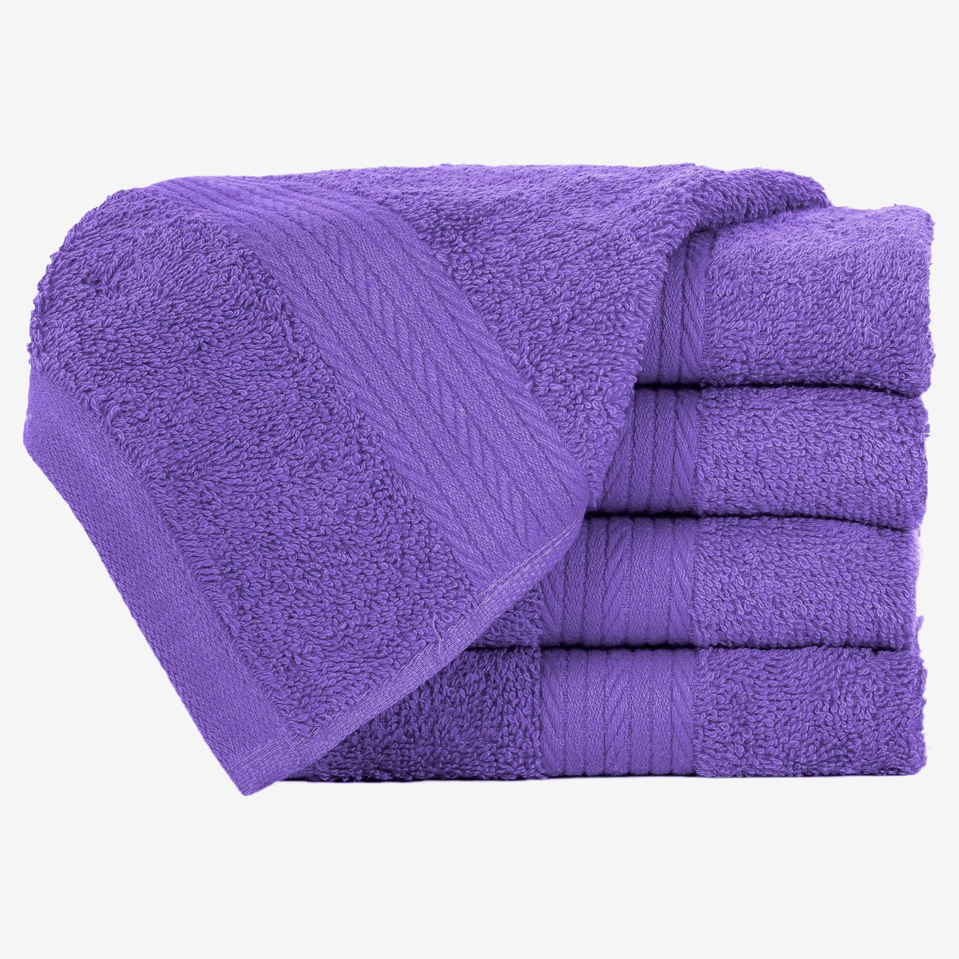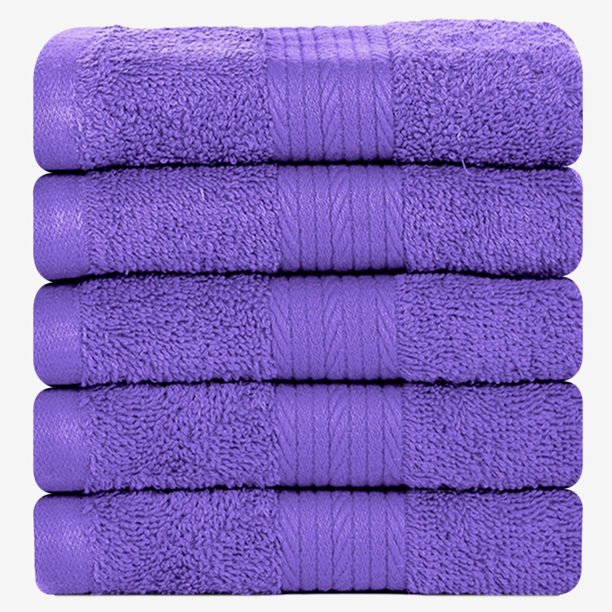 Ample Decor Washcloths Pack of 5 12 X 12 Inch, 600 GSM 100% Cotton Soft Absorbent, Premium Quality Durable Ideal for Bathroom, Pool, Hotel, Spa - Purple