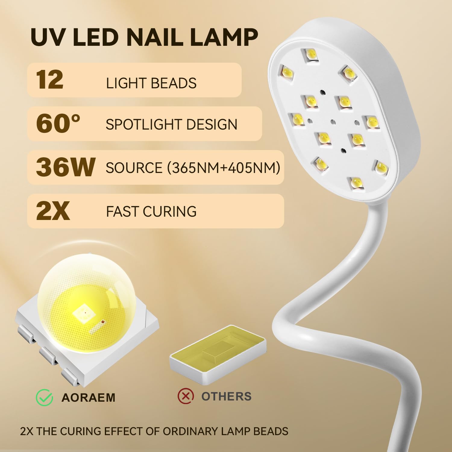 AORAEM UV Nail Lamp, Gooseneck Mini U V Light for Gel Nails, 36W Rechargeable LED Flash Cure Lamps with 4 Timers & Auto Sensor, Quick Dry Professional Nail Dryer for Salon Home DIY Use, White