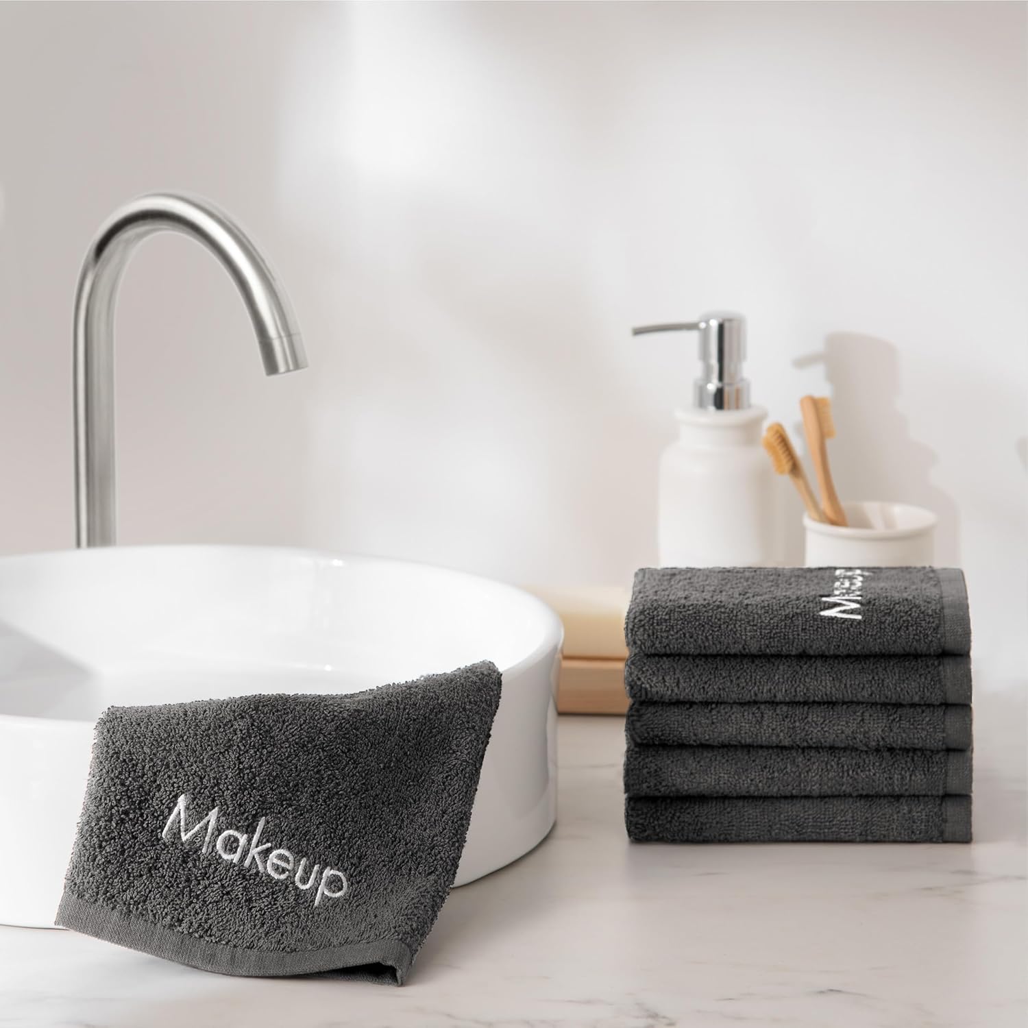 - ELEGANT TOUCH TO ANY HOME – These chic face towels for women feature the word “makeup” embroidered on the plush, black towel. They’re the perfect addition to any bathroom, and even make a beautiful touch to your rental home, Airbnb and much more.