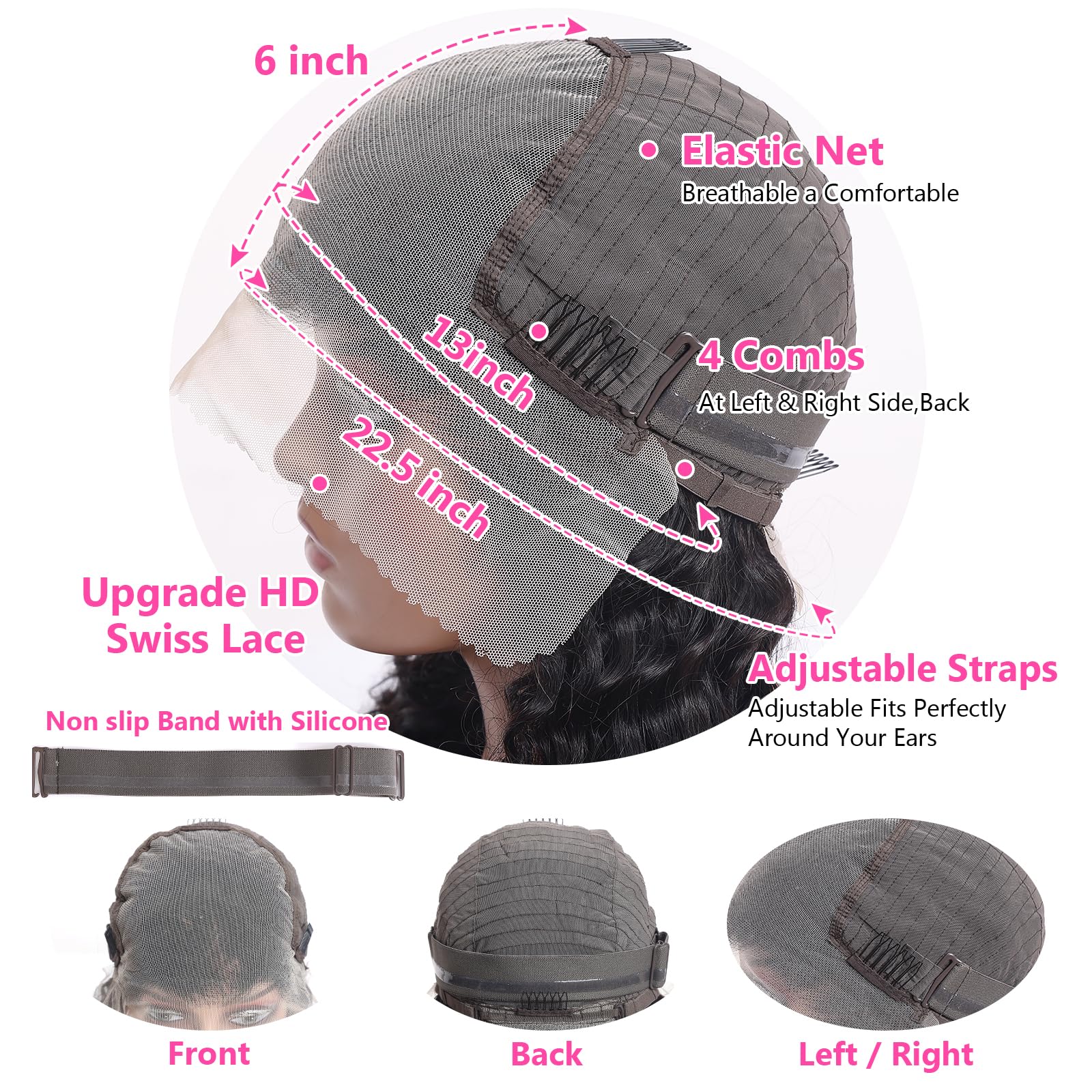- 13x6 Hd Swiss Lace:13x6 Hd Transparent Lace, Made With Hd Swiss Lace,Ultra-Thin & Breathable Hd Lace Blends Seamlessly With All Skin Tones.More Breathable And More Comfortable To Wear.Bring You A More Realistic Experience, More Natural