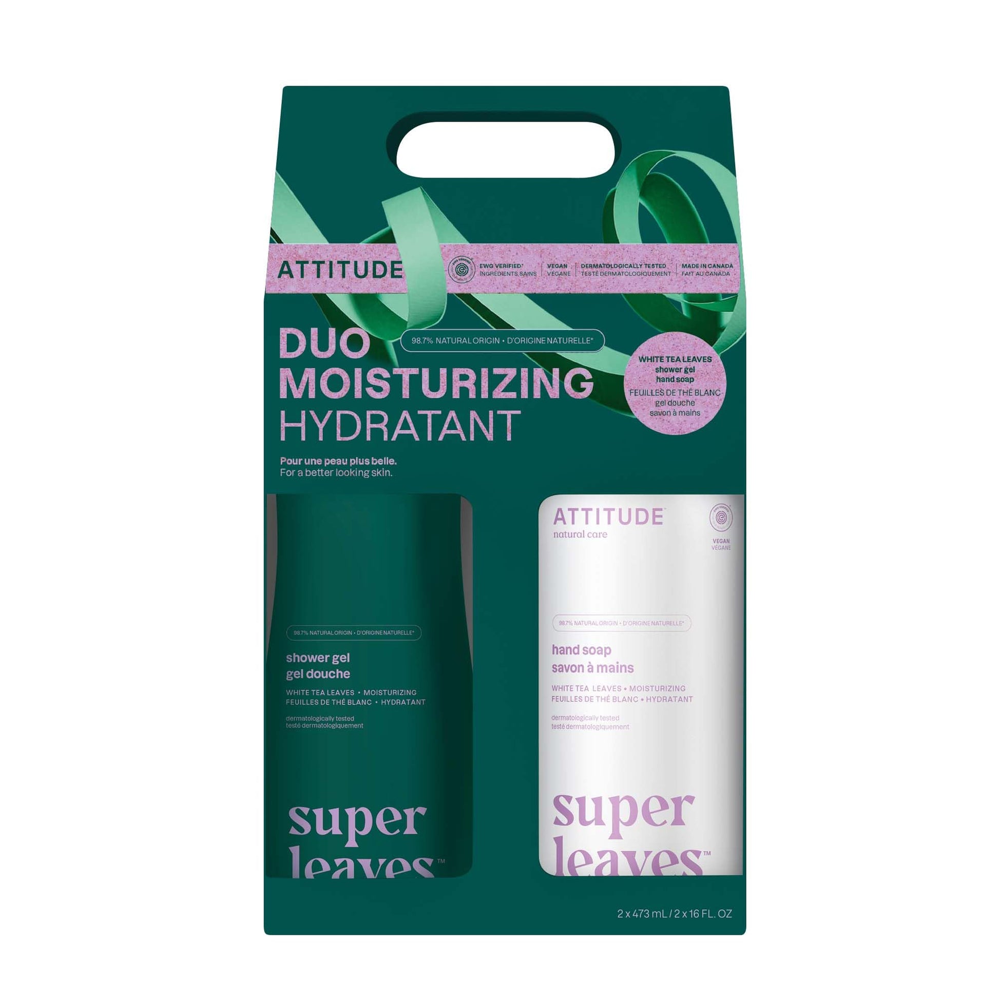 ATTITUDE Body Wash and Hand Soap Set, EWG Verified, Vegan Moisturizing Duo, Dermatologically Tested Shower Gel and Personal Care Products, White Tea Leaves, 16 Fl Oz each