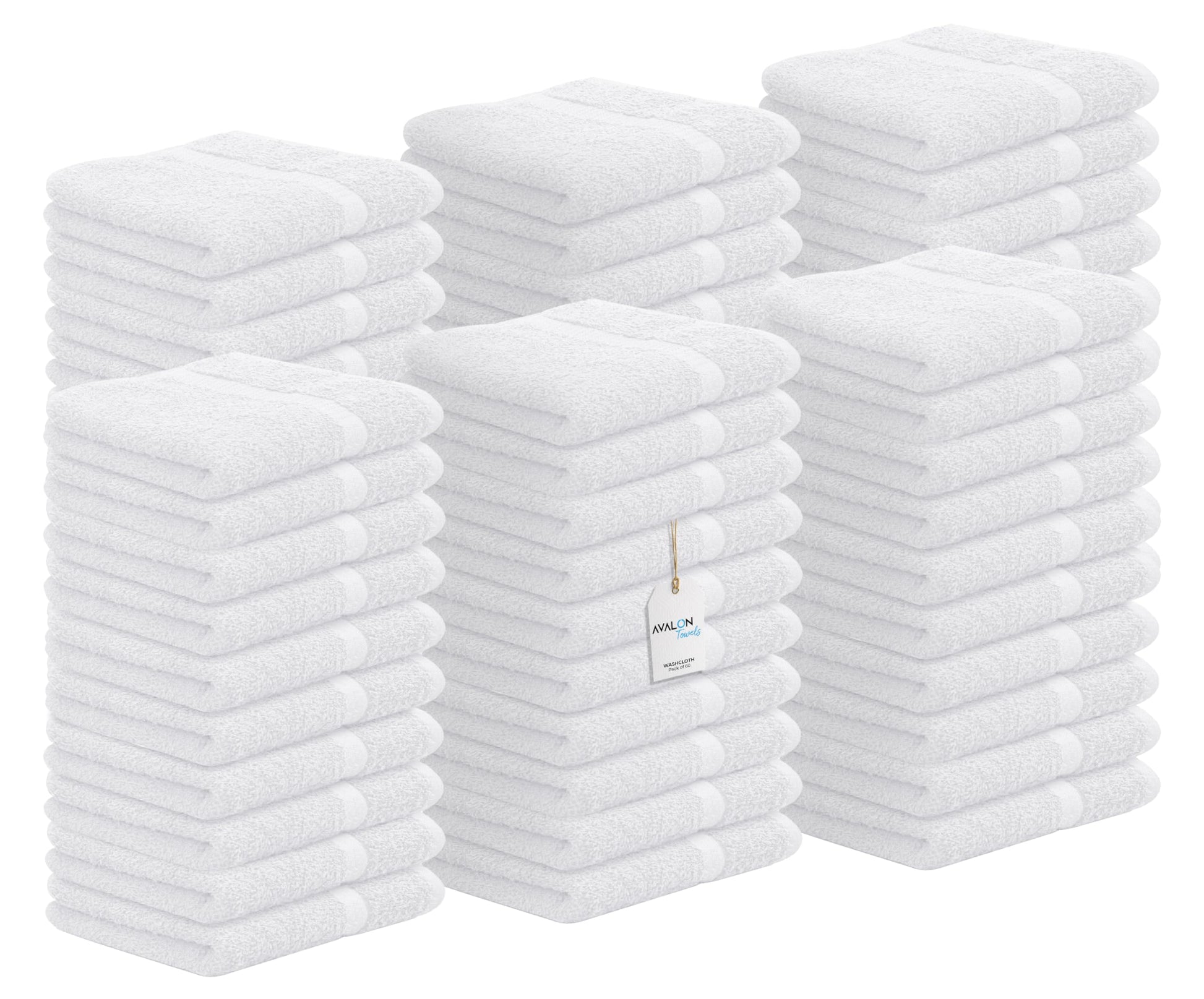 Avalon Towels Cotton Washcloths – (Pack of 60) Size 12x12 Inches, 100% Ring Spun Cotton, Soft & Absorbent Face Towels, Gym Towels, Hotel and Spa Quality, Reusable Fingertip Towels (White)