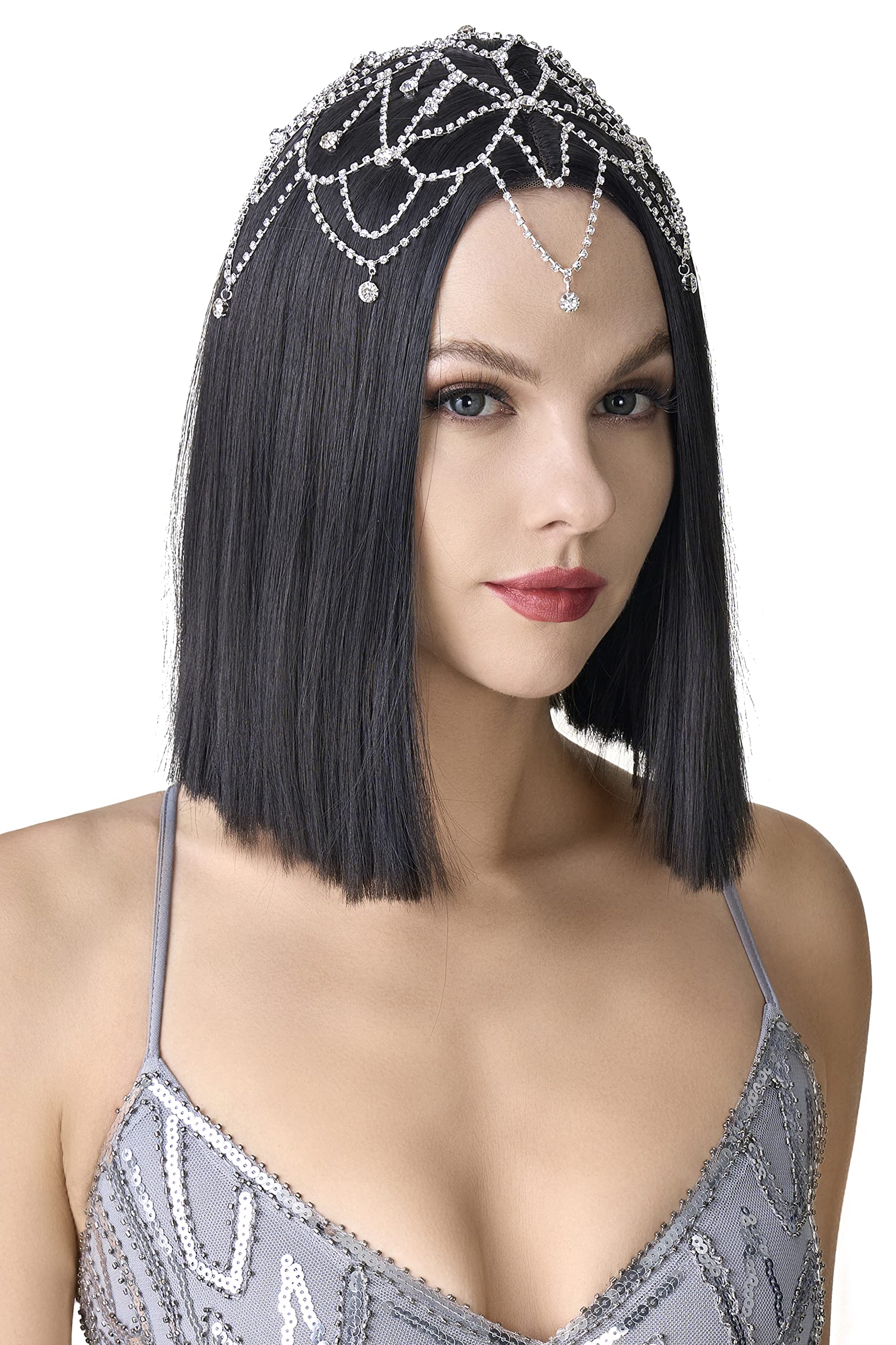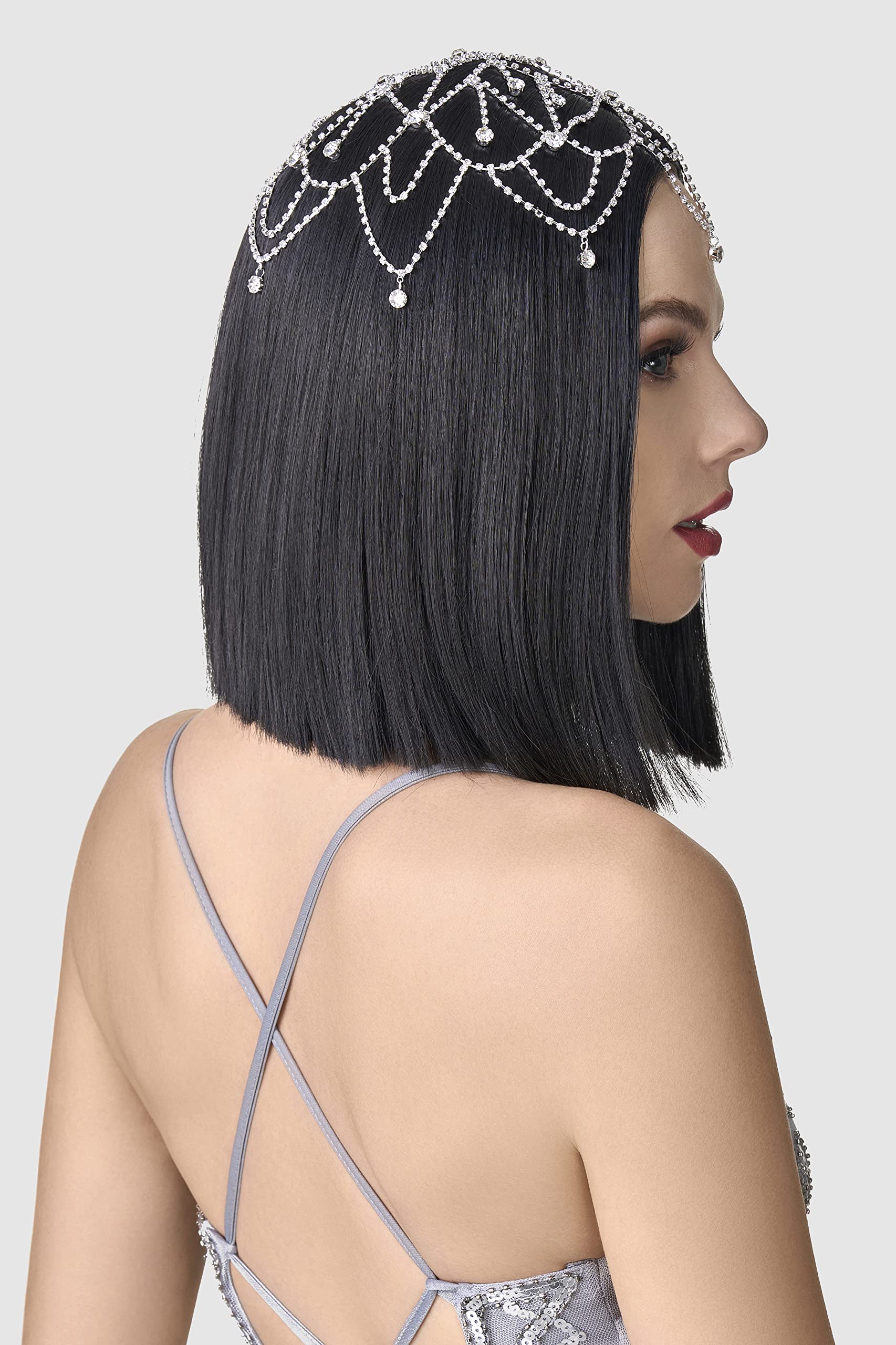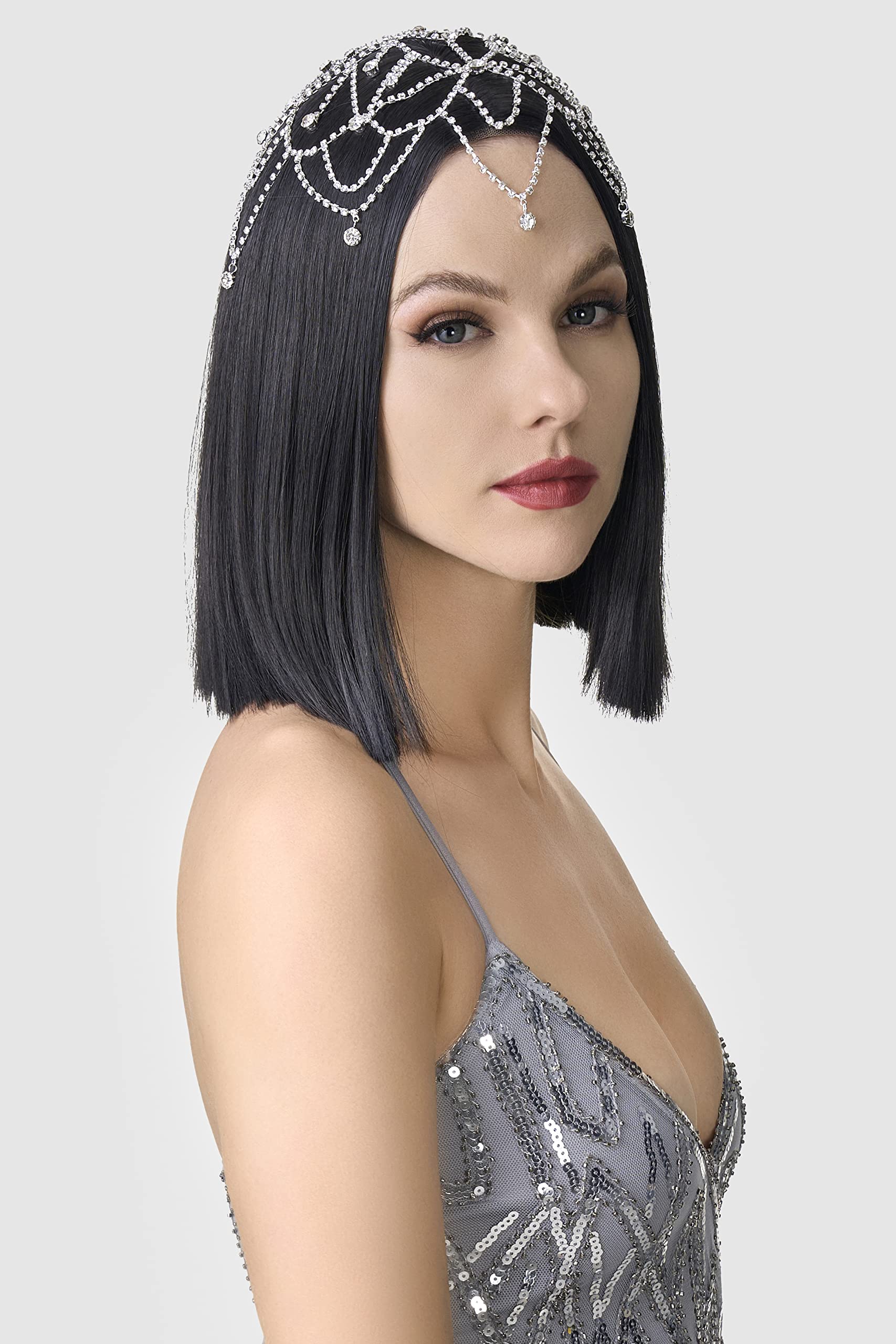 BABEYOND 1920s Crystal Cap Headpiece Rhinestone Head Chain Roaring 20s Great Gatsby Hair Accessories for Art Deco Party (Silver)