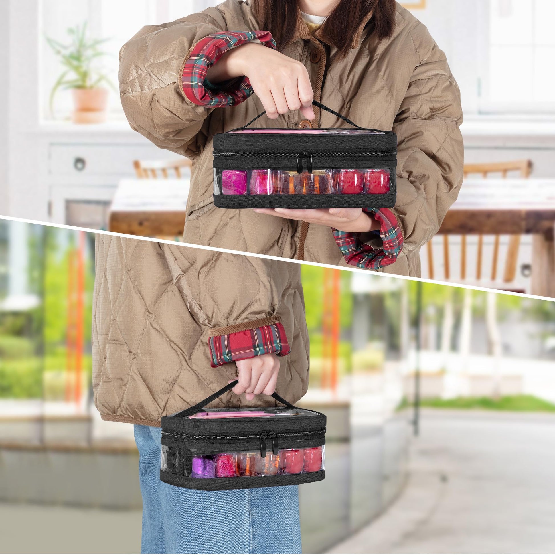 - EXCELLENT MATERIAL: This nail polish bag is made of heavy-duty polyester and high-transparency PVC, featuring a stylish design that is both aesthetically pleasing and long-lasting.