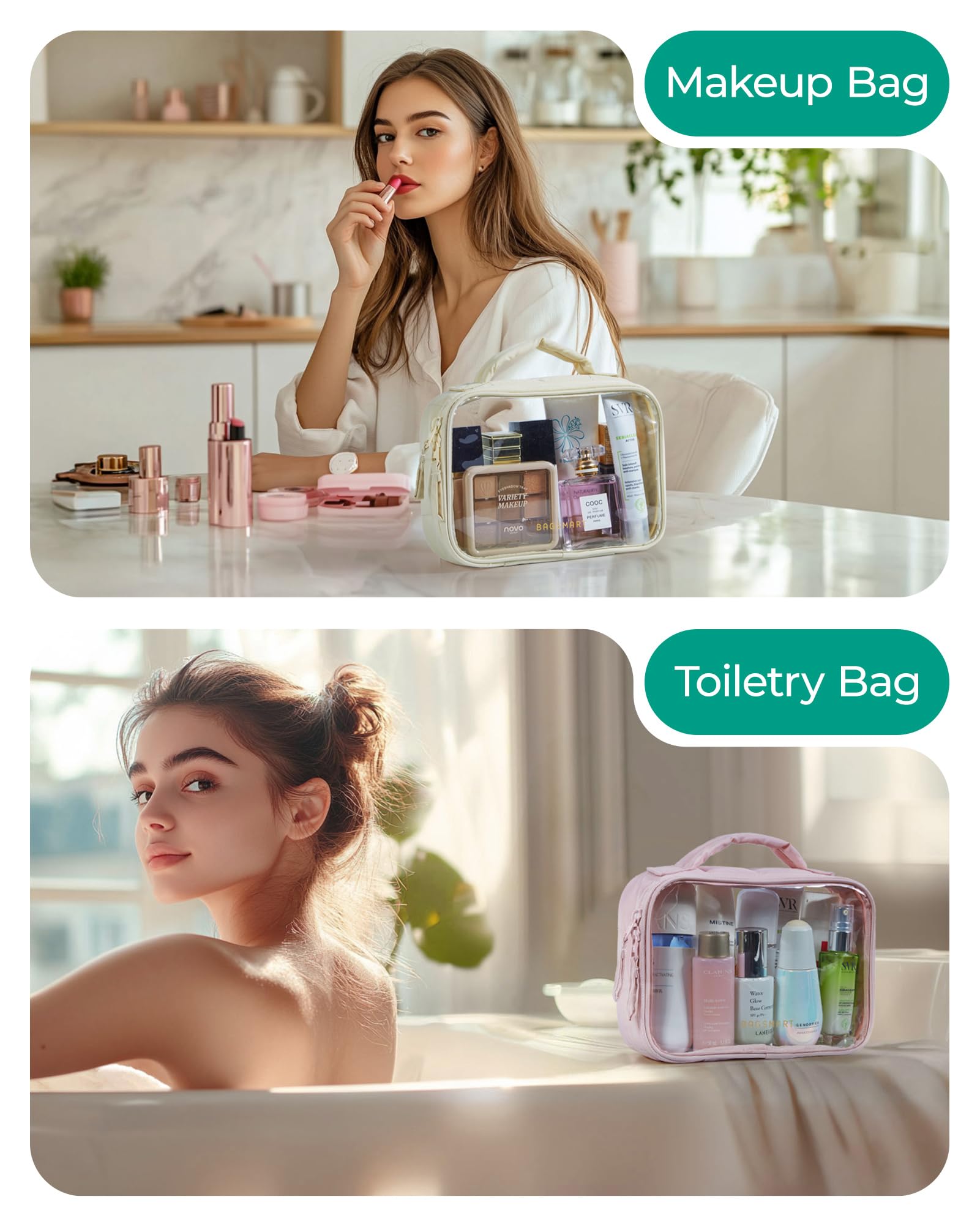- Easy to Use - The clear toiletry bag feature a user-friendly design with strong and smooth double zippers and 180° horizontal fold opening, strong and wear-resistant edges, and a larger top opening for easy access to all toiletries and cosmetics, no more rummaging around