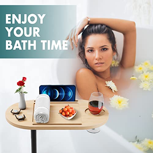 Bamboo Bathtub Tray Table with Sturdy Base & Thick Metal Bracket, Adjustable Height, Perfect Bathroom Tub Accessories, Bed Side Desk, Sofa End Table Gift for Women, Men