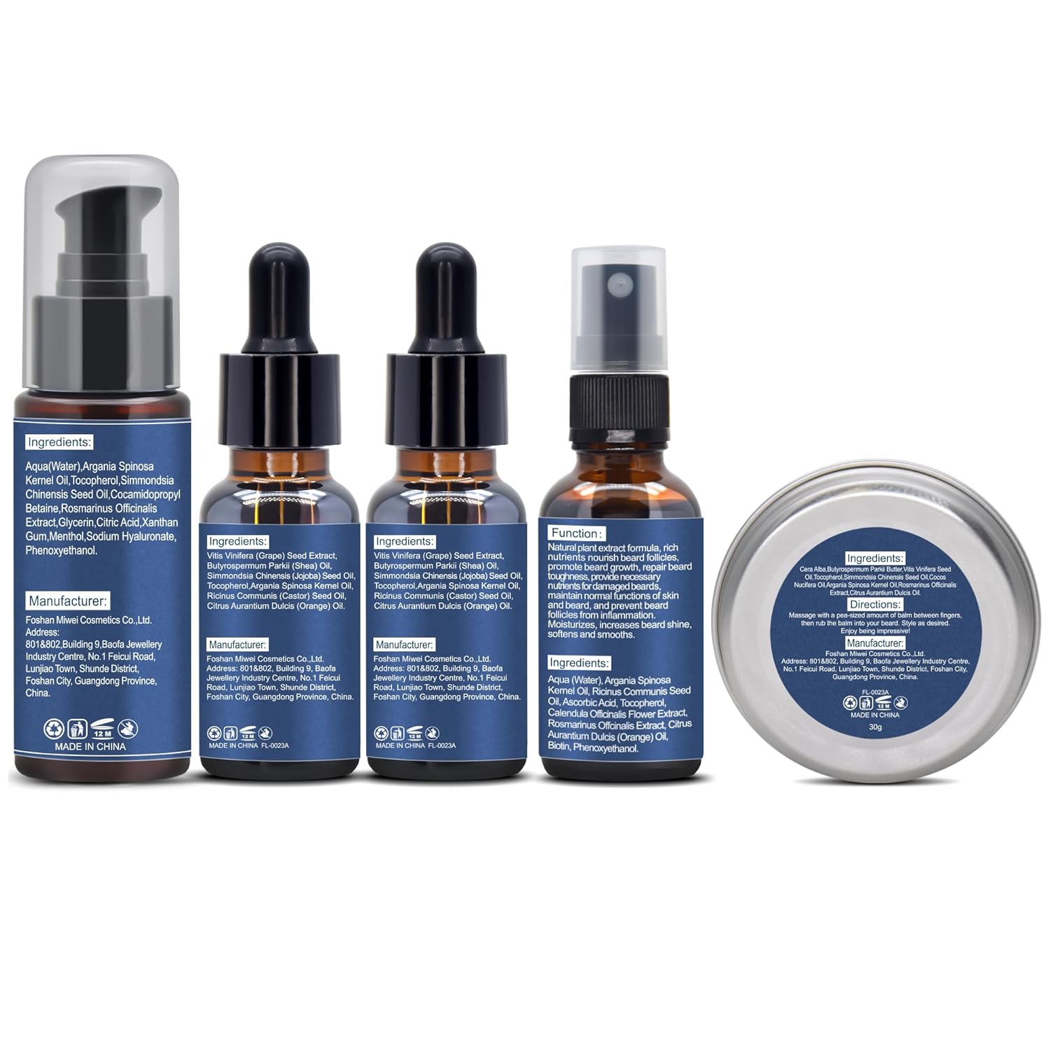 - Beard Vitamin Spray: Why us? Our beard kit comes with a beard vitamin spray which is packed with essential vitamins and nutrients that nourish and condition the beard hair follicles.these would help to strengthen the beard, prevent breakage,reduce itchiness and Irritation,enhances beard appearance.Apply directly onto the beard and can be easily incorporated into your grooming routine.The spray format allows for even distribution of the product, reaching all areas of the beard effectively.