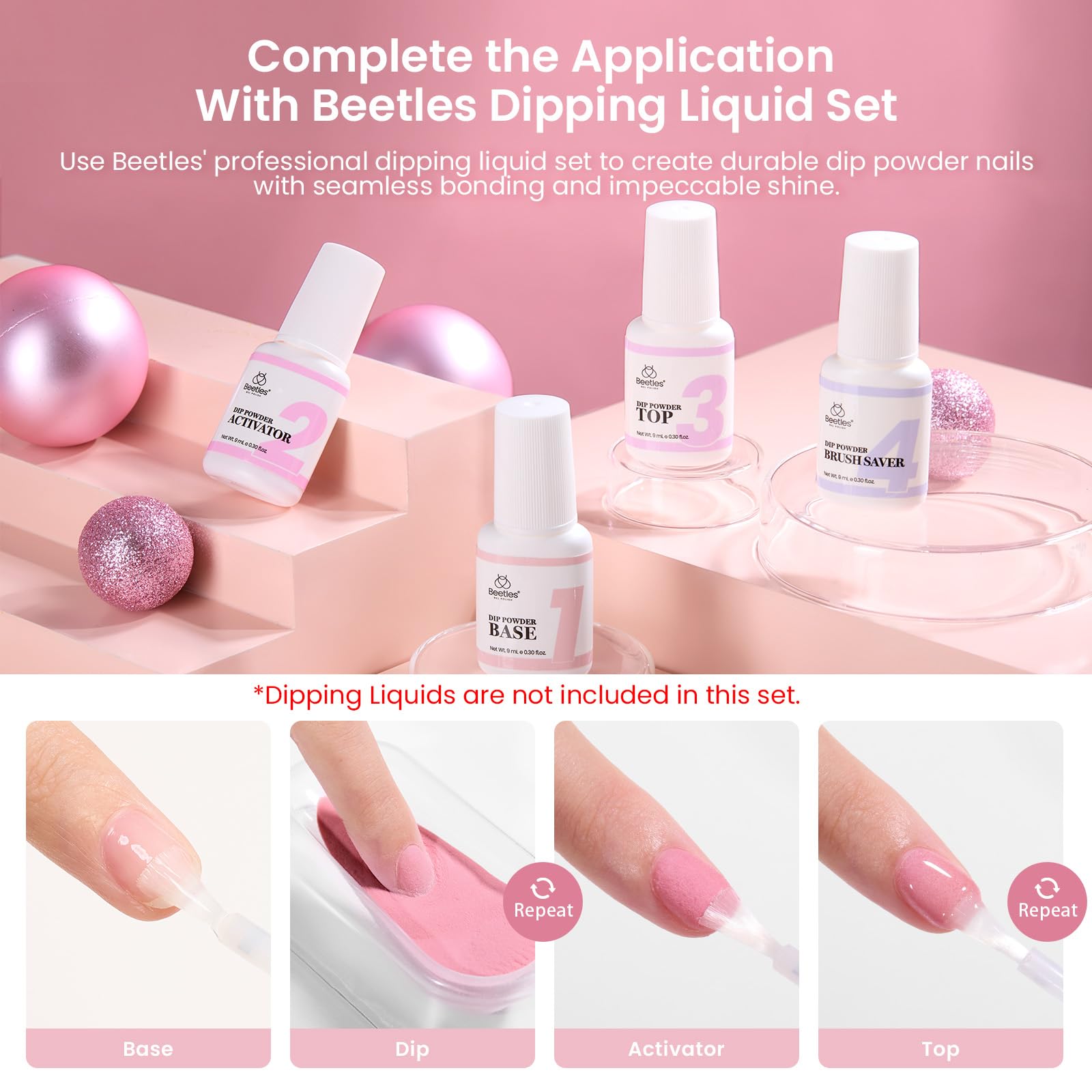 - High Quality: The high-quality dip powder paired with our beetles dip liquid set boasts exceptional adhesion, enabling a perfect bond with natural nails for a durable, chip-resistant, and non-fading finish. It leaves nails looking natural, lightweight, and with impeccable shine