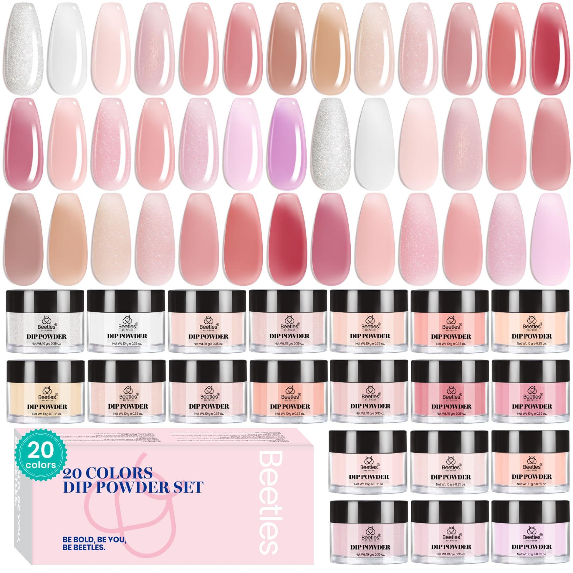 Beetles Pink Nude Dip Powder Nail Kit, 20 Colors Neutral Jelly Pink Sheer Glitter White Dip Nails Powder Starter Kit, Jelly Effect French Nail Art Starter Manicure Salon DIY Home Gift for Women