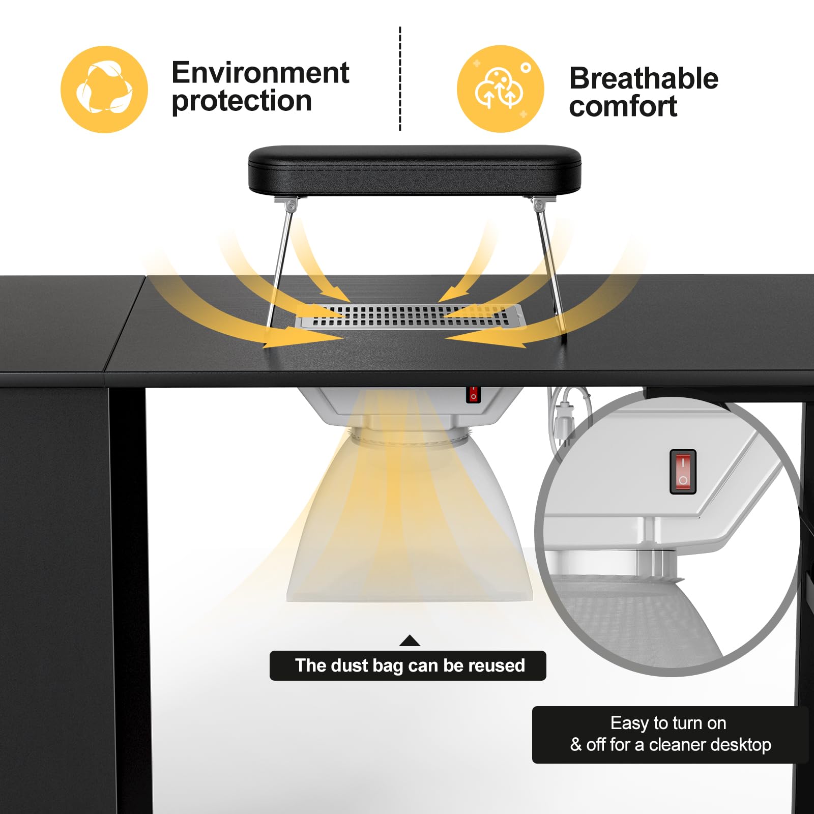 - 💅[STRONG SUCTION DUST COLLECTOR] - Belandi manicure nail table is equipped with a built-in dust collector and 3 dust bags to absorb the dust during the process of the manicure; It enables you to keep the desktop clean.