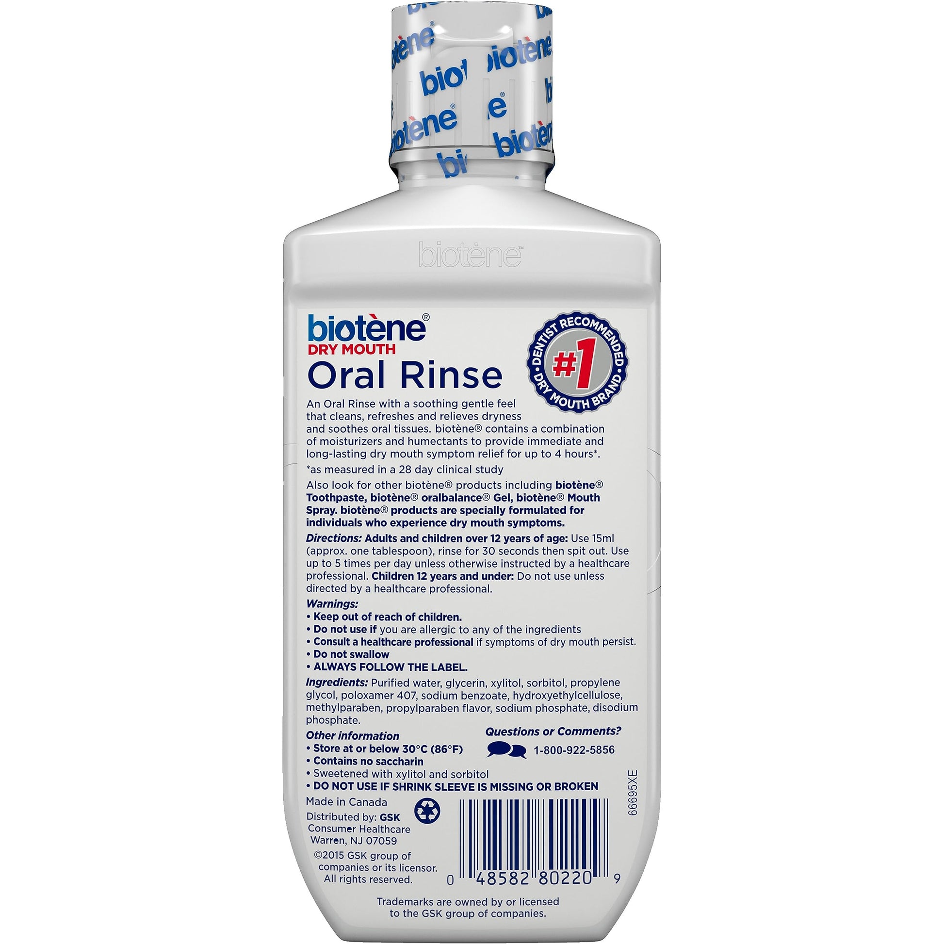 - Biotene dry mouth oral rinse and oral spray provide up to four hours of relief from dry mouth symptoms