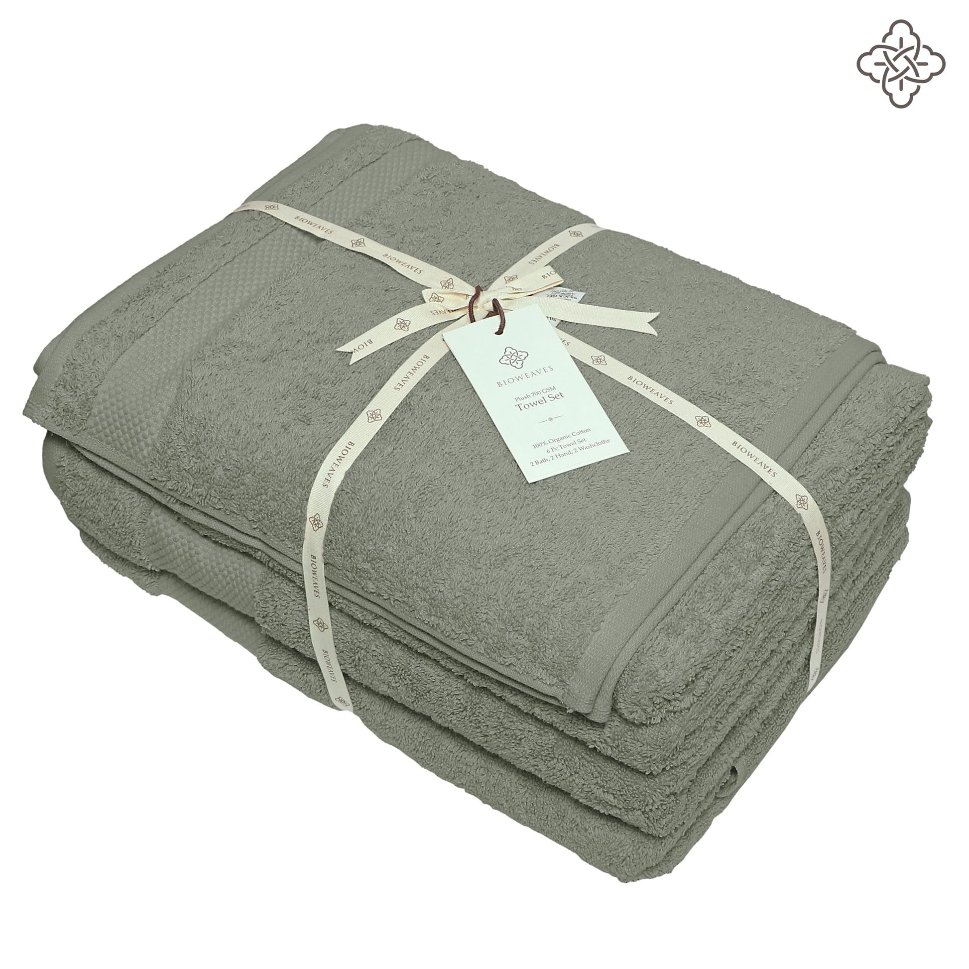BIOWEAVES 100% Organic Cotton 6-Piece Luxury Bathroom Towels Set GOTS Certified 700 GSM, 2 Bath Towels, 2 Hand Towels & 2 Wash Cloths - Sage