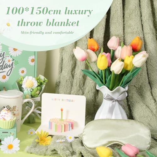 - ¡¼Birthday Gifts For Women¡½Relaxing Spa Gifts Basket Birthday Gifts for Women is specially designed.It is absolutely full of amazing array of gifts! There are approximately 11 gifts included in this box making it perfect perfect either for yourself or for a very special family member or friend!You will receive a light green blanket that is quite soft and large enough for watching TV or taking a nap, Included is also a large, but not too heavy cup that has a lid and a spoon for your tea or cocoa, while you relax.