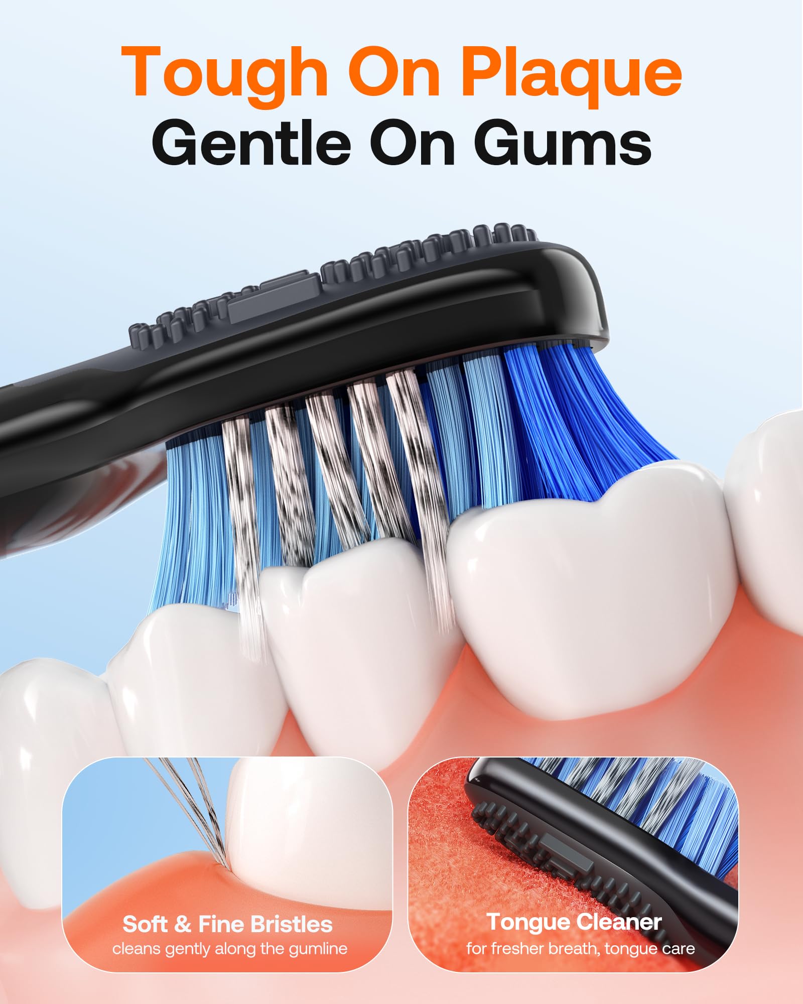 - Sleek and Lightweight Travel Toothbrush: Our rechargeable toothbrush's slim design and lightweight build make packing a breeze; Your Perfect On-the-Go Companion with a 60 days battery life, stay fresh and confident every day, everywhere