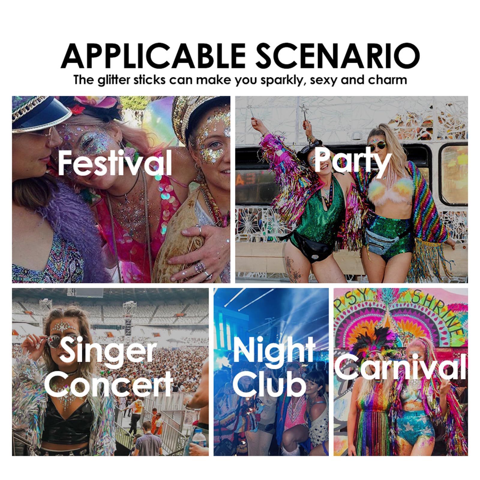 - 【Use in Various Occasions】It suitable for Halloween,Christmas,Independence day,Pride Day glitter.Ideal for singer concerts, music festival, coachella glitter, wedding, club, party, nightclub revelry, performance, also can be applied sparingly for a daily glitter.