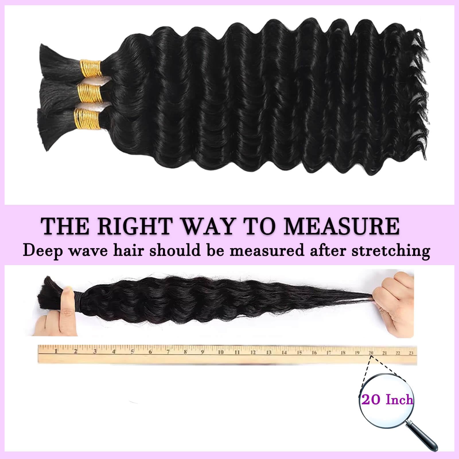 - Boho Human Hair Easy and Convenient: Deep water wave braiding hair come with 3 bundles per pack. Weftless and Knotlesss. Bulk human hair for braiding is 110G per pack. We recommend using 2-3 packs to style for perfect braids, for more fullness Volume and Length, 3-4 packs are recommended