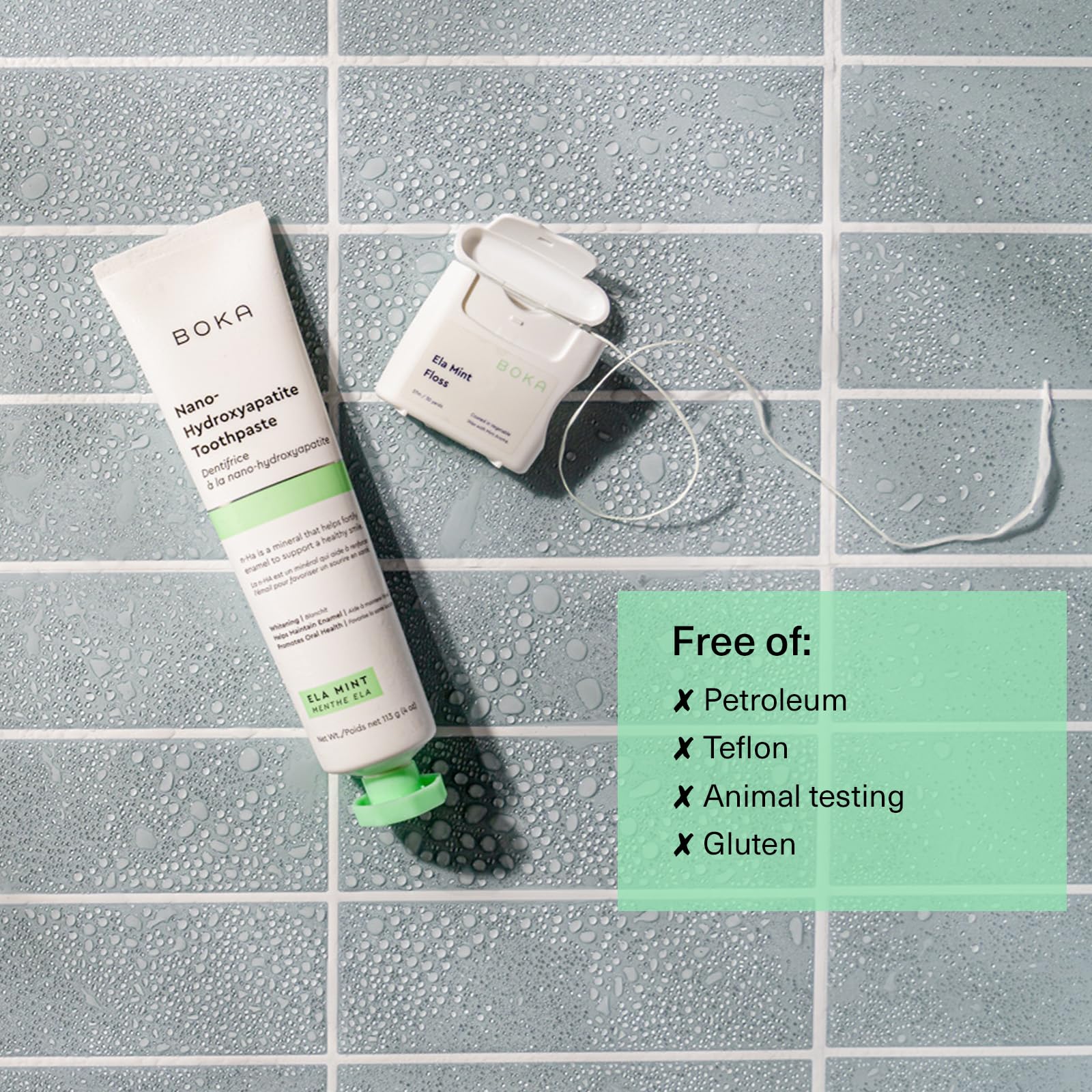 Boka Ela Mint Woven Dental Floss, Made from Plant-Based Vegetable Wax, Teflon-Free, 30 Yards of Waxed Floss (Pack of 1)
