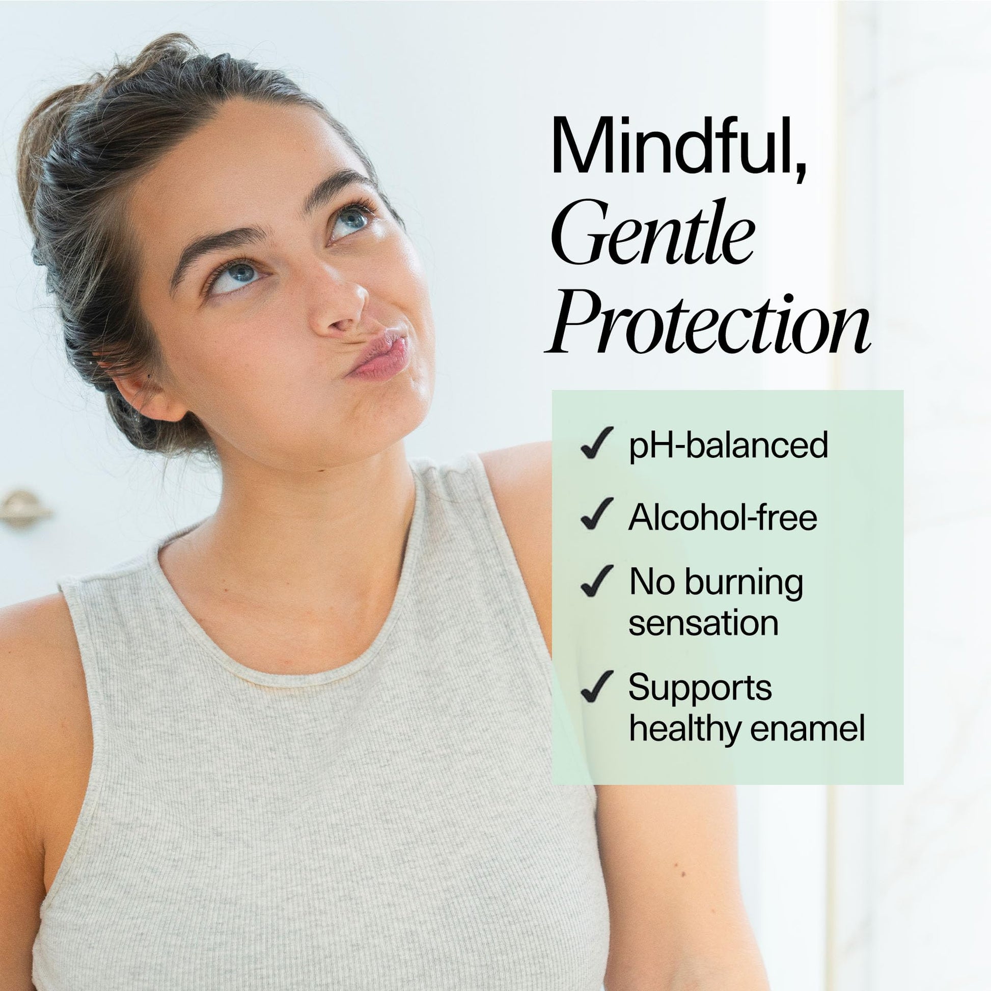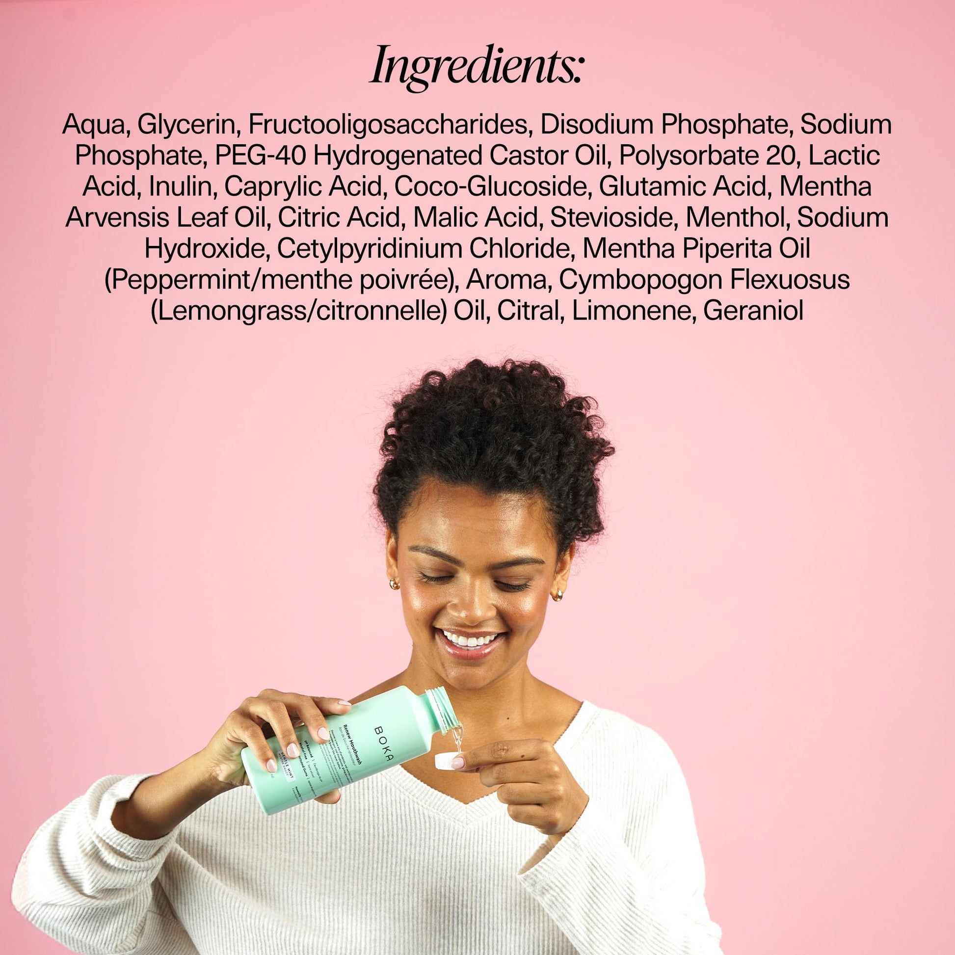- Nurturing Formula with Prebiotics - This mouth wash for adults contains prebiotics that support beneficial bacteria growth. Unlike traditional mouth rinse products that disrupt your oral microbiome, our pH-balanced oral rinse helps maintain your mouth's ecosystem.
