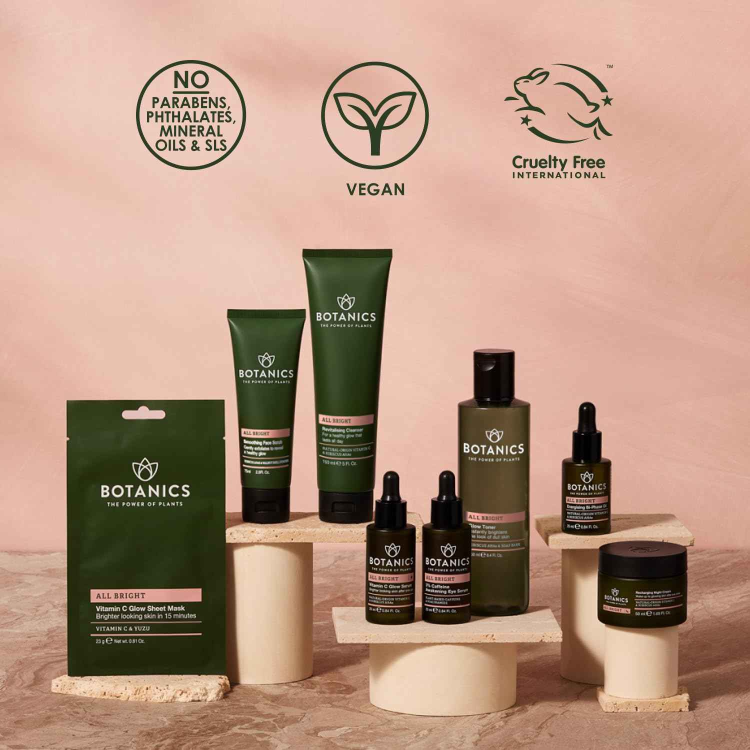 Botanics All Bright Facial Oil - Energizing Bi-Phase Face Oil for Gua Sha and Everyday Radiance - Lightweight & Non-Greasy Glow Serum - Brighten Dull and Uneven Skin (0.84 Fl Oz)