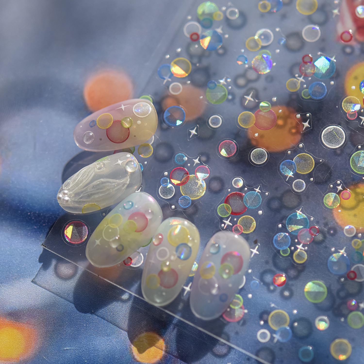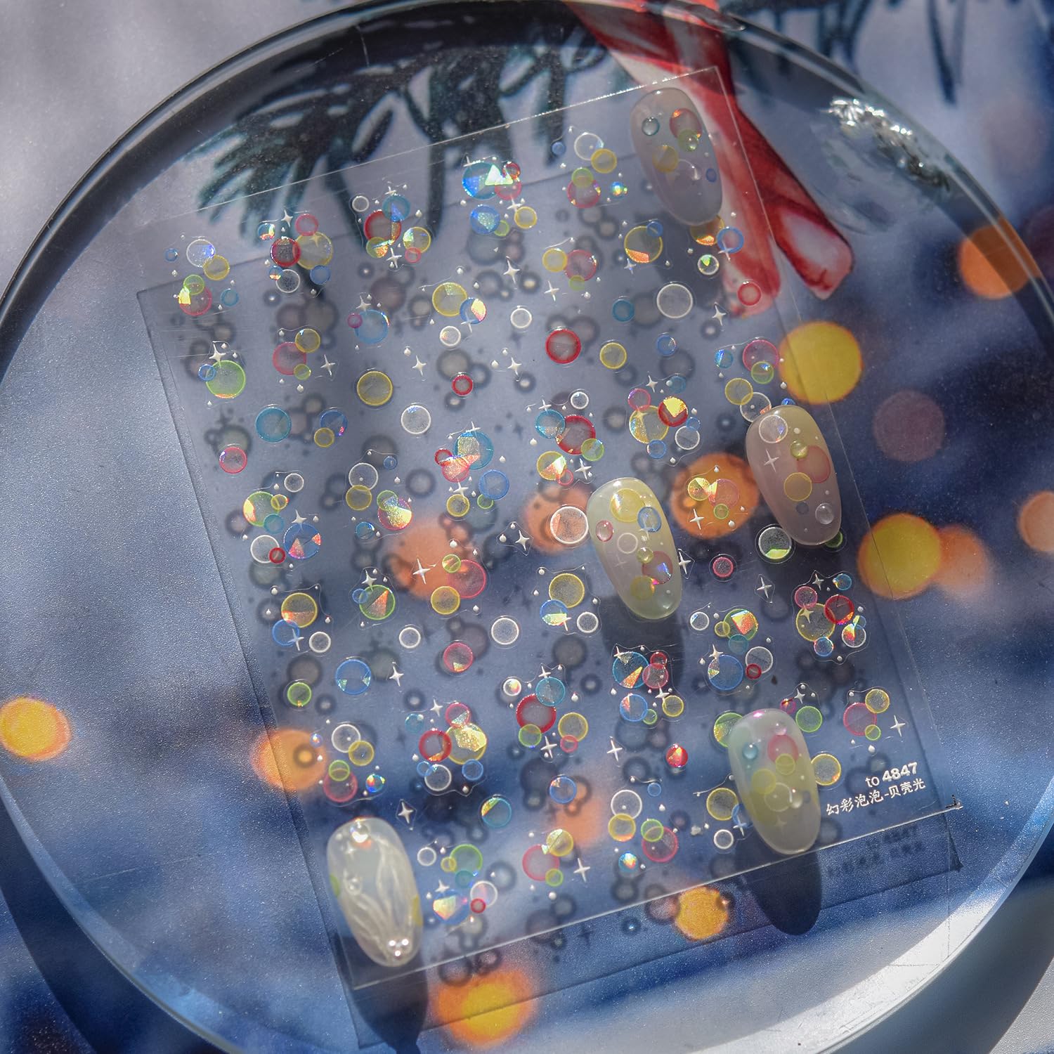 - Package Contain: You will receive 1 sheets of shiny bubble stickers for nails in 3.94×3.15in, catering to your rich imagination for daily nail DIY and uplifting your mood